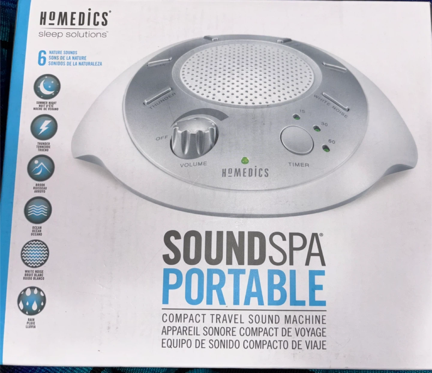 Looking to create a relaxing environment? I'm selling a Homedics SoundSpa Portable. It's a compact travel sound machine that features 6 nature sounds, including summer night, thunder, brook, ocean, white noise, and rain. It also has a timer function. Perfect for travel or home use!