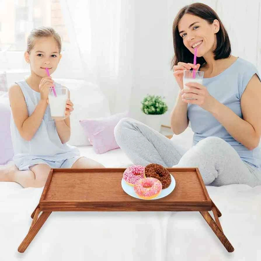 22Ideal for serving breakfast and dinner, this breakfast tray also can be used as a writing or drawing table for work on the bed such as reading books, surfing the internet with a laptop. Brand: Home Basics Material: Wood Product Dimensions: 30.5D x 49.5W x 21.6H Centimetres Colour: Pine Special feature: Durable Style: Rustic Folding bed tray is perfect for breakfast in bed or tv dinners. Pine construction is rustic and sturdy. Legs fold for easy storage; 12-Inch by 19.5-Inch by 1.5-Inch