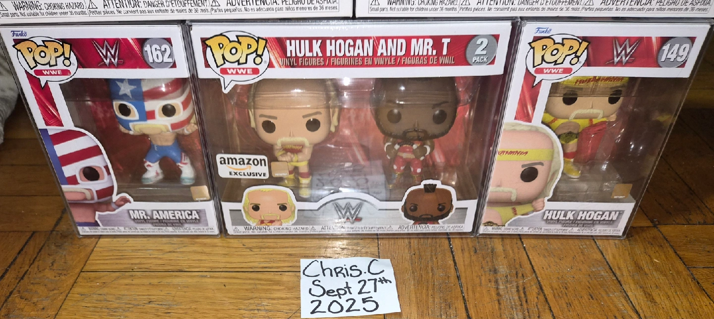 Selling a collection of Funko Pop! WWE wrestler figures. Included are Hulk Hogan, Mr. America, and the Hulk Hogan and Mr. T 2-pack. All figures are in their original boxes and in great condition. Perfect for any wrestling fan or Funko Pop! collector!
