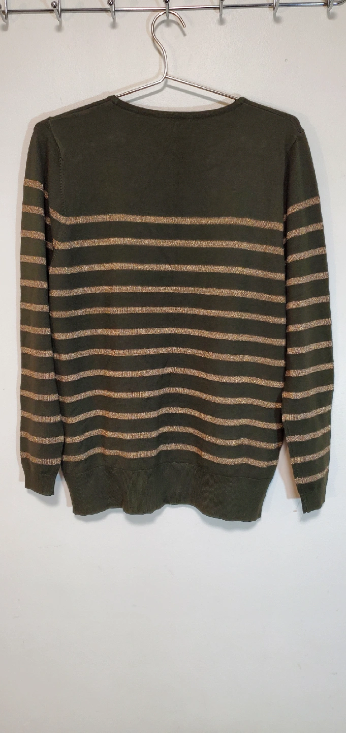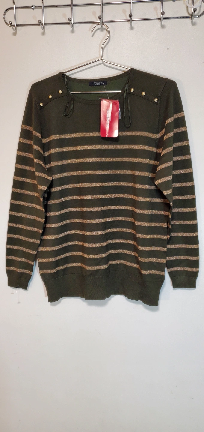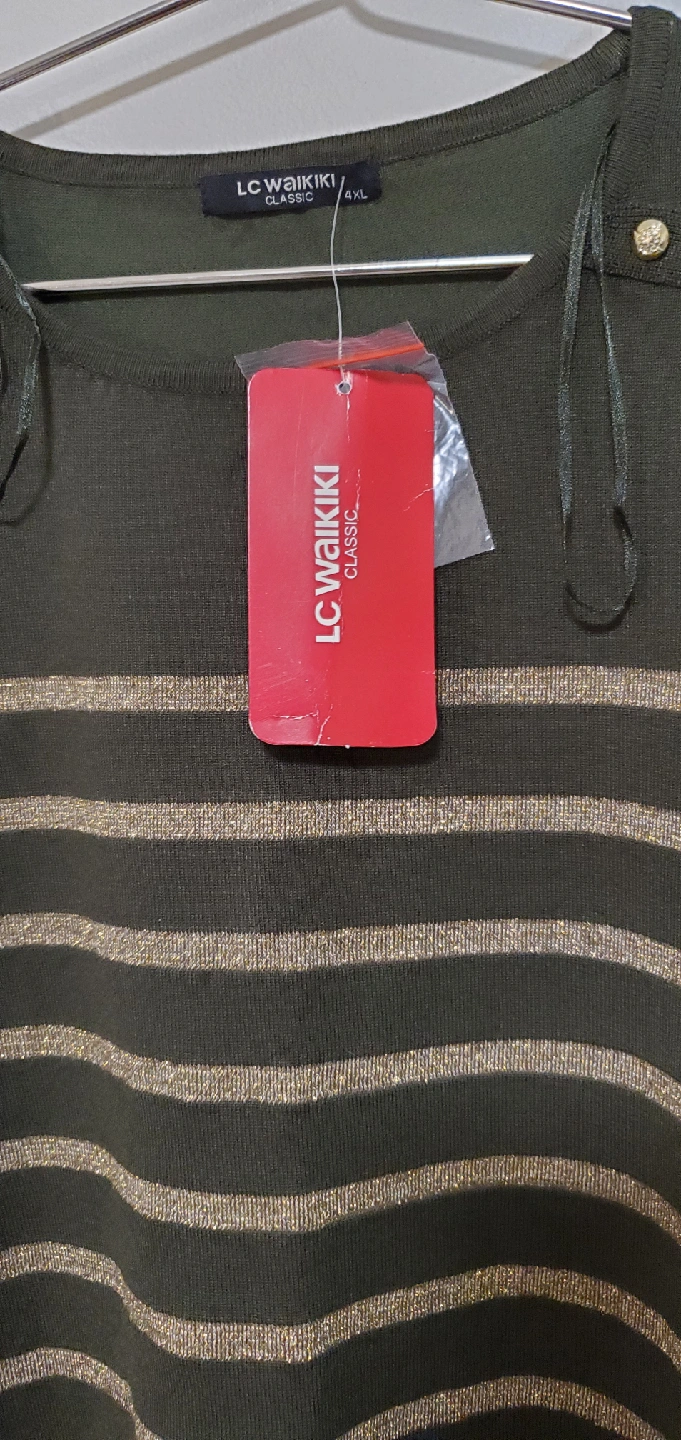 22This is a brand new LC Waikiki Classic sweater in size 4XL. It features a stylish striped pattern in green and gold. The material feels soft and comfortable, perfect for adding a touch of elegance to your wardrobe!
