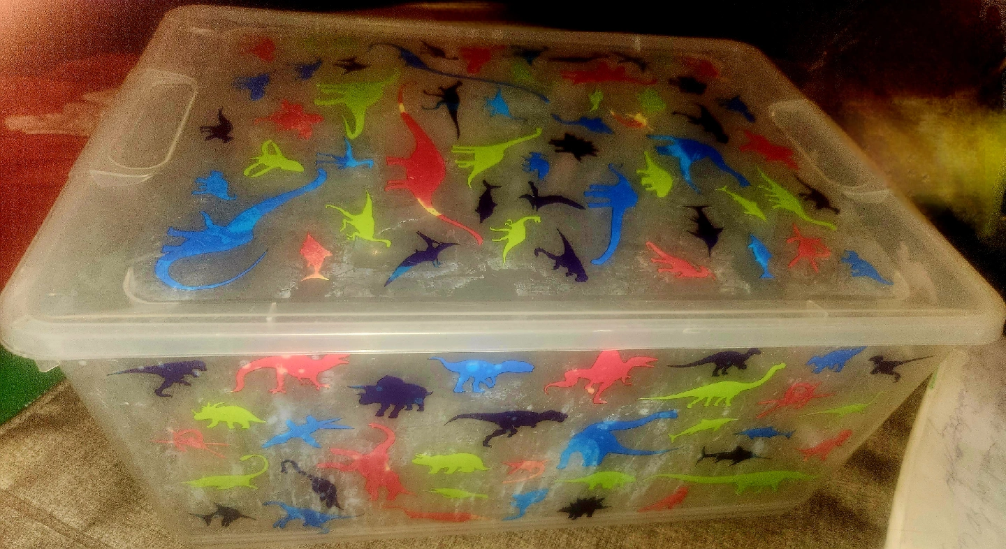 Selling a cute storage box decorated with colourful dinosaurs! It comes with a lid to keep everything neat and tidy. Perfect for kids' toys, books, or clothes. Pick up only unless near intersection of Oxford and Gammage Street.