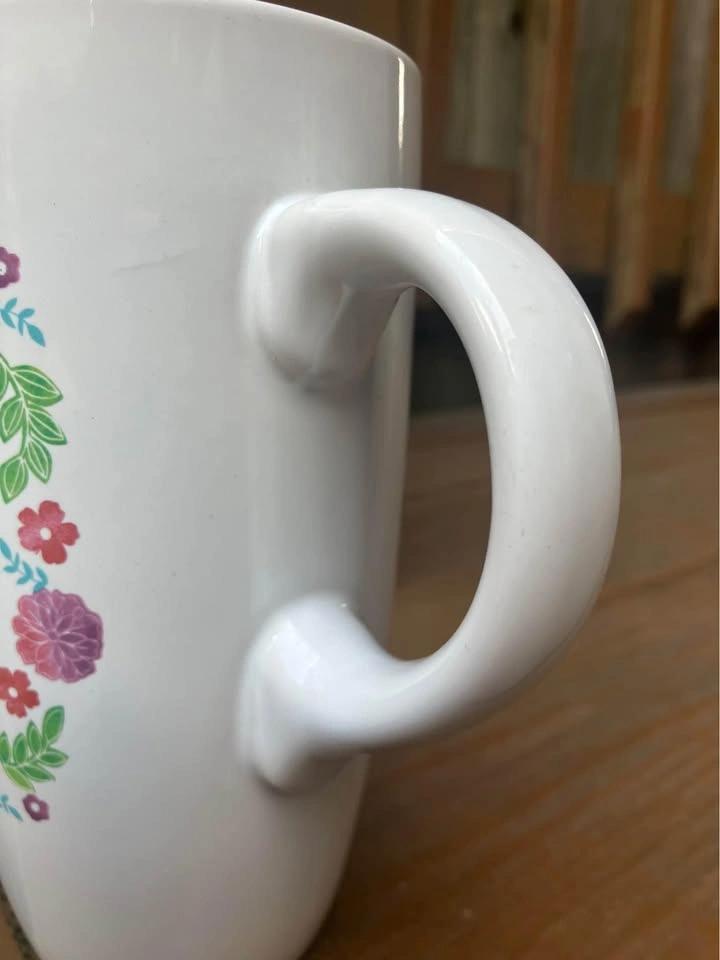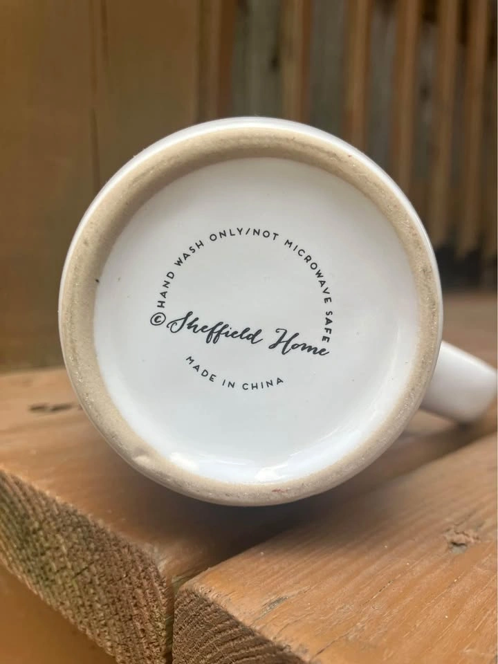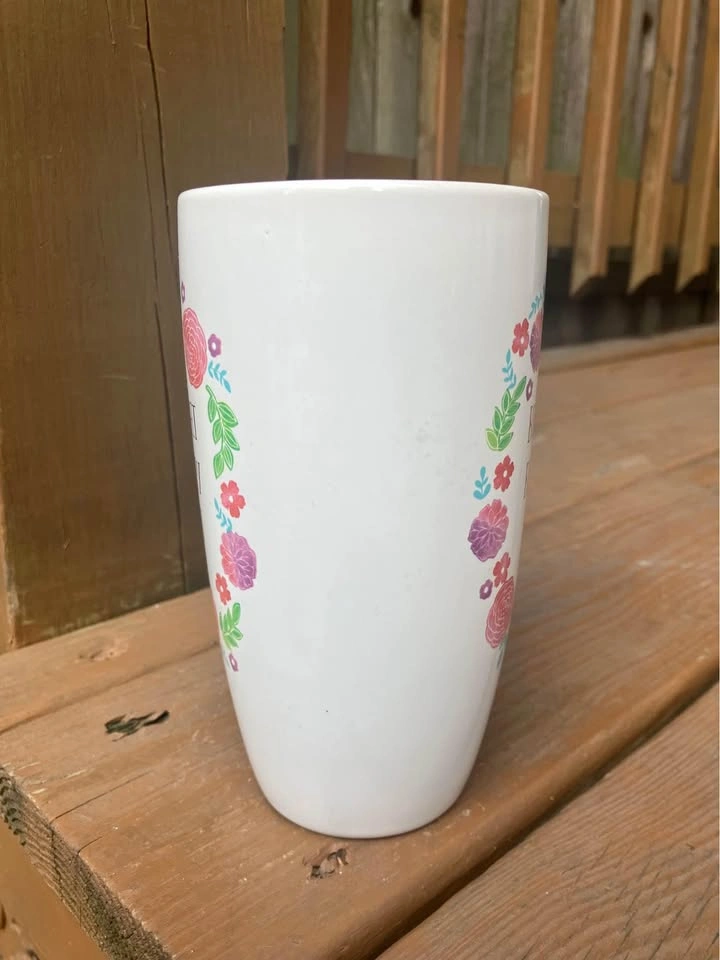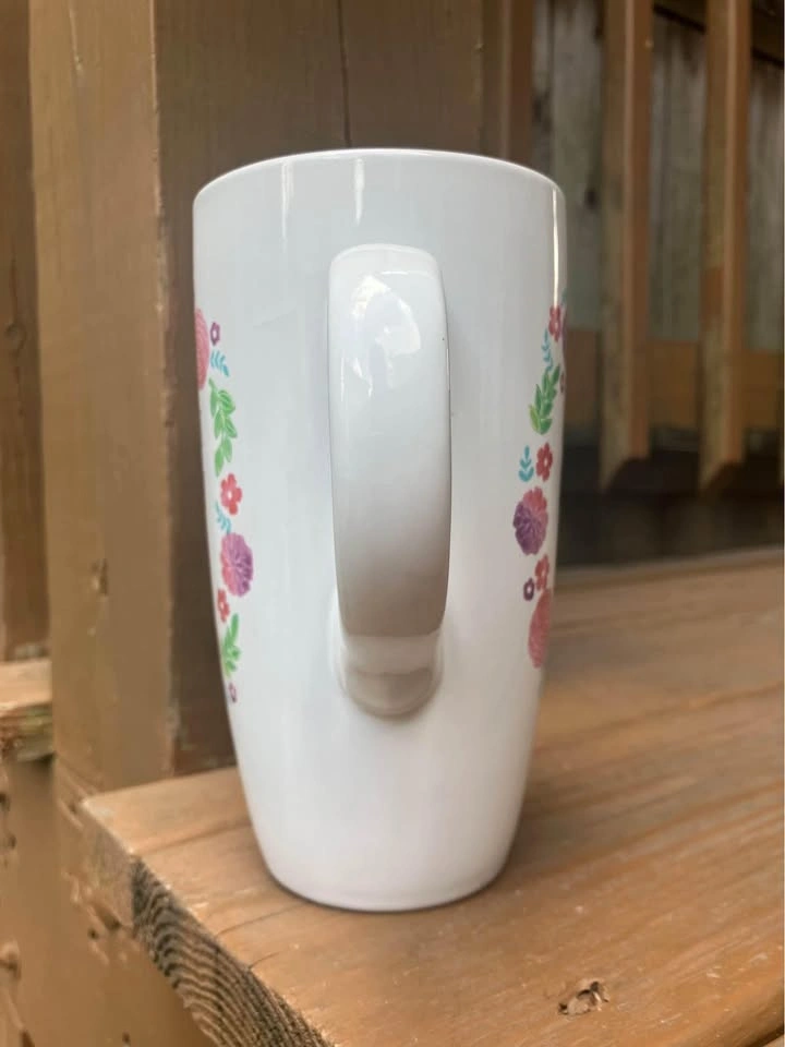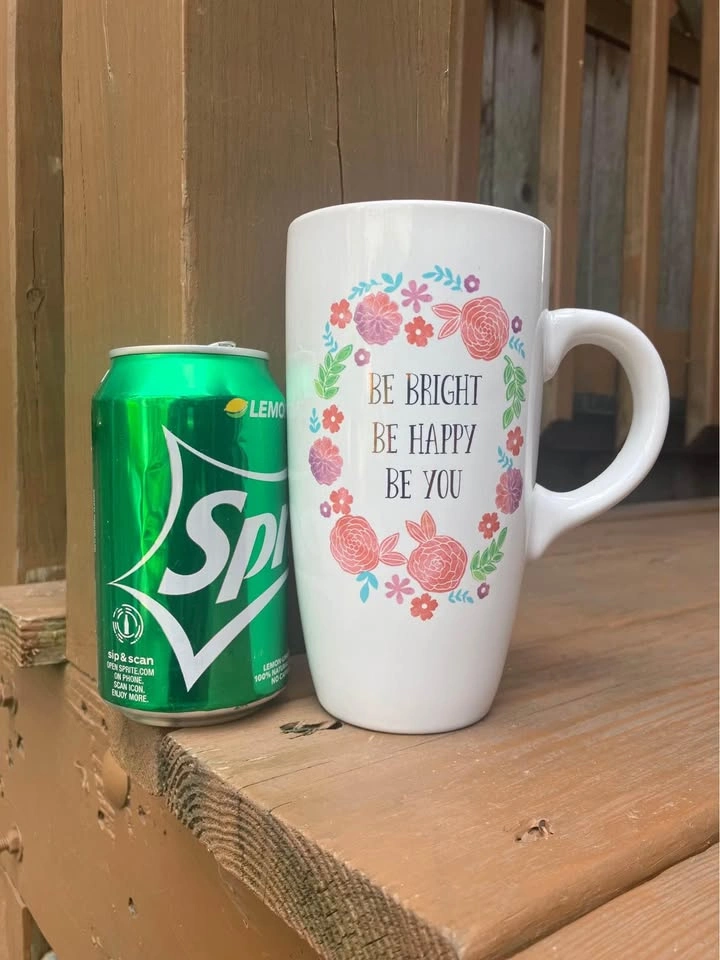 Sheffield Home “Be Bright Be Happy Be You” 18 Oz Coffee Mug - Like New Coffee/Tea mug measures 6.5” tall x 3.5” top diameter x 2.25” bottom diameter. Including handle it’s 5.5” wide. Jumbo 18 Oz. capacity. “Be Bright Be Happy Be You” logo is surrounded by a pink floral motif and is featured on both sides of the mug. From a smoke and pet free home. Check out in person before purchasing. Thanks for looking.