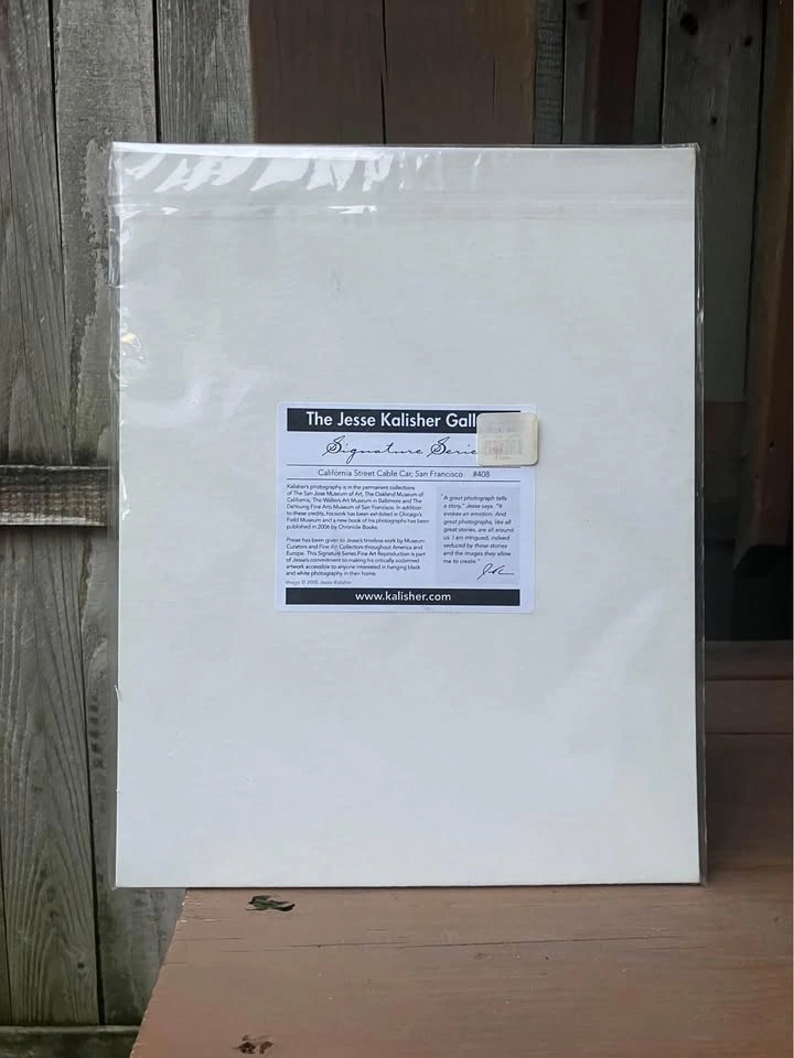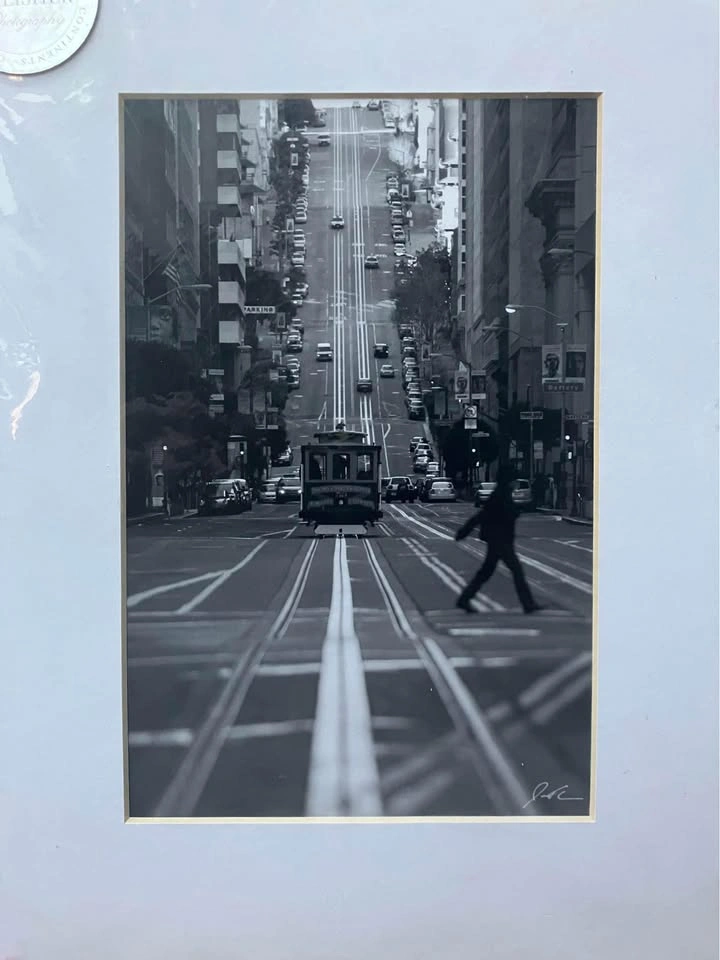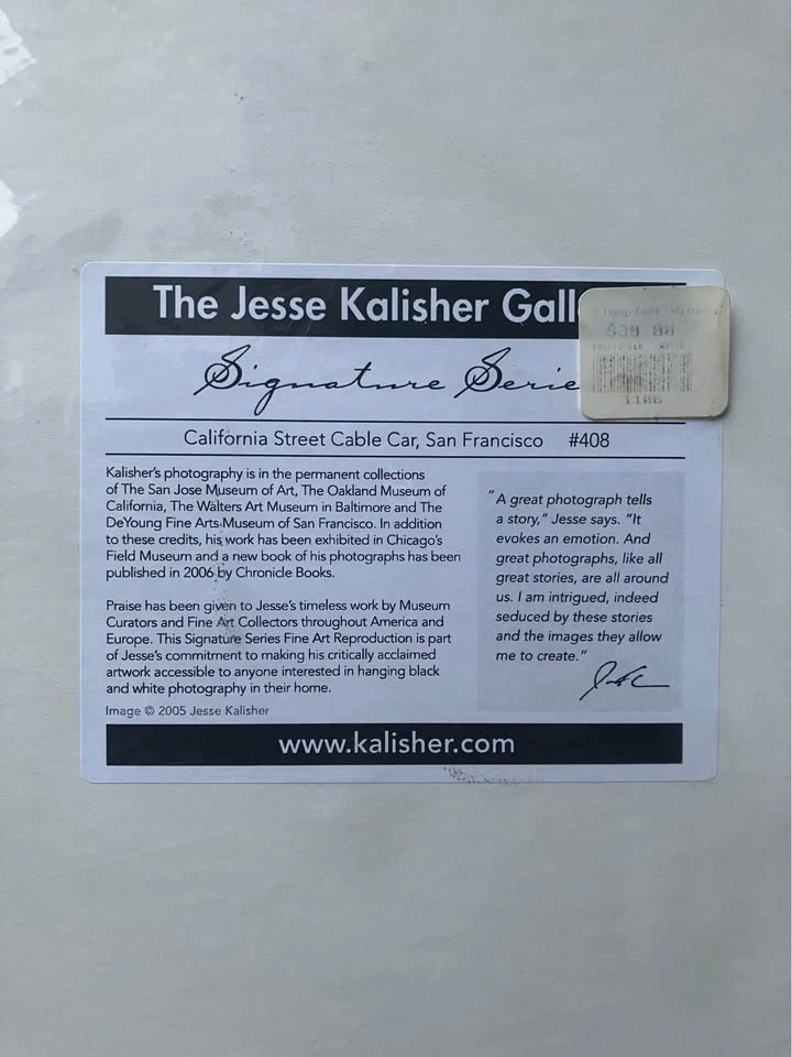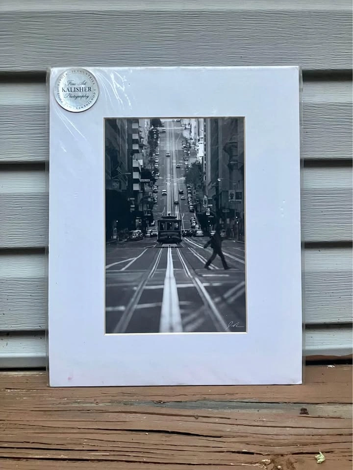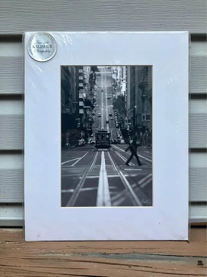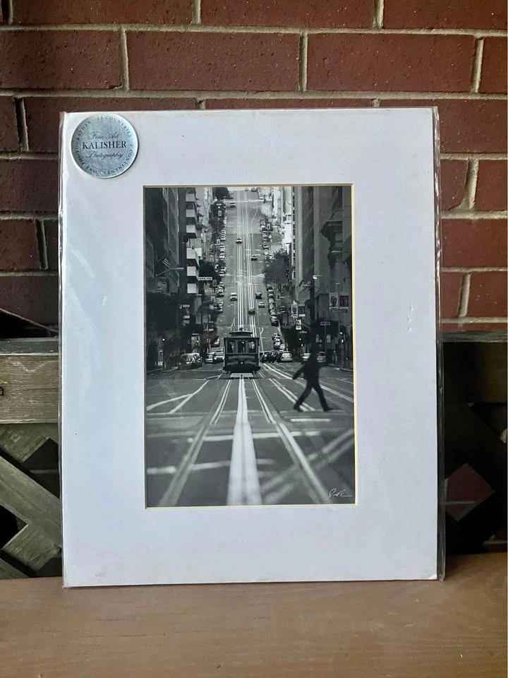 Factory sealed Jesse Kalisher Signature Series Fine Art Reproduction from 2005. Title is “California Street Cable Car, San Francisco.” Overall measurement is 14” x 11”. Image is 9.5” x 6”. Matting has some wear on the edges but will not be visible when framed. From a smoke and pet free home. Check out in person before purchasing. Thanks for looking.