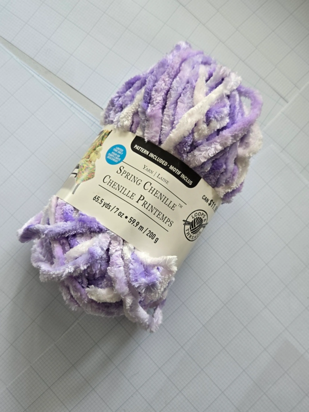 Selling a skein of SUPER SOFT! Loops & Threads Spring Chenille yarn in a lovely lilac and white colour. It's perfect cozy/ baby projects πππΈ