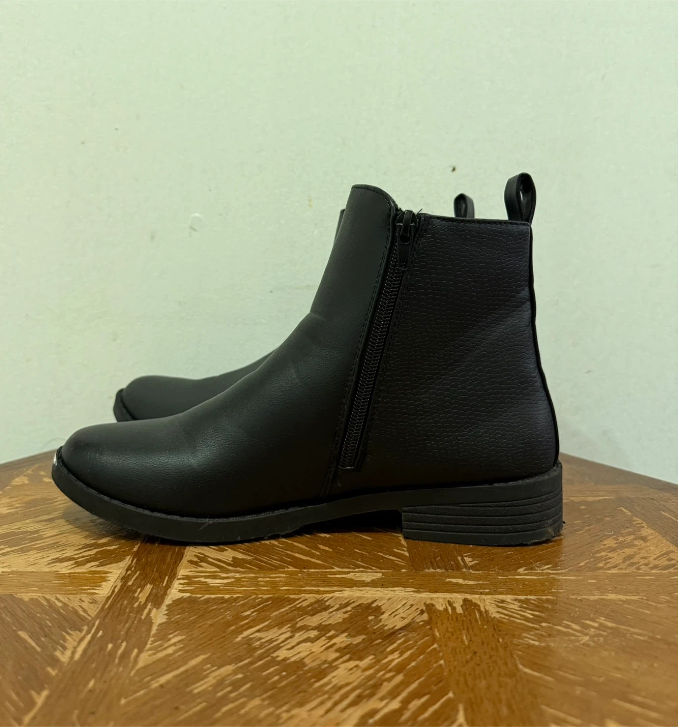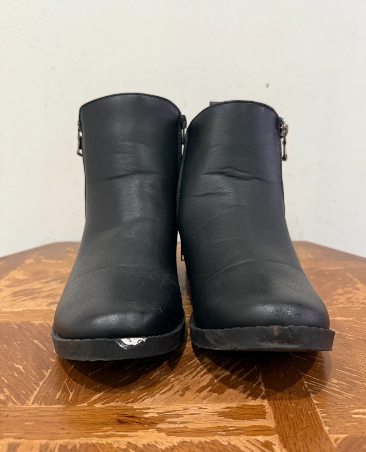 Selling a pair of black ankle boots. They show some signs of wear as seen in the pictures, but still have lots of life left in them! Great for everyday wear or dressing up an outfit.