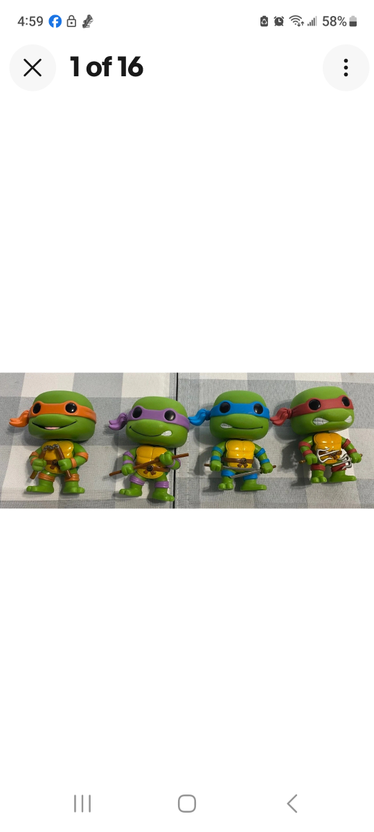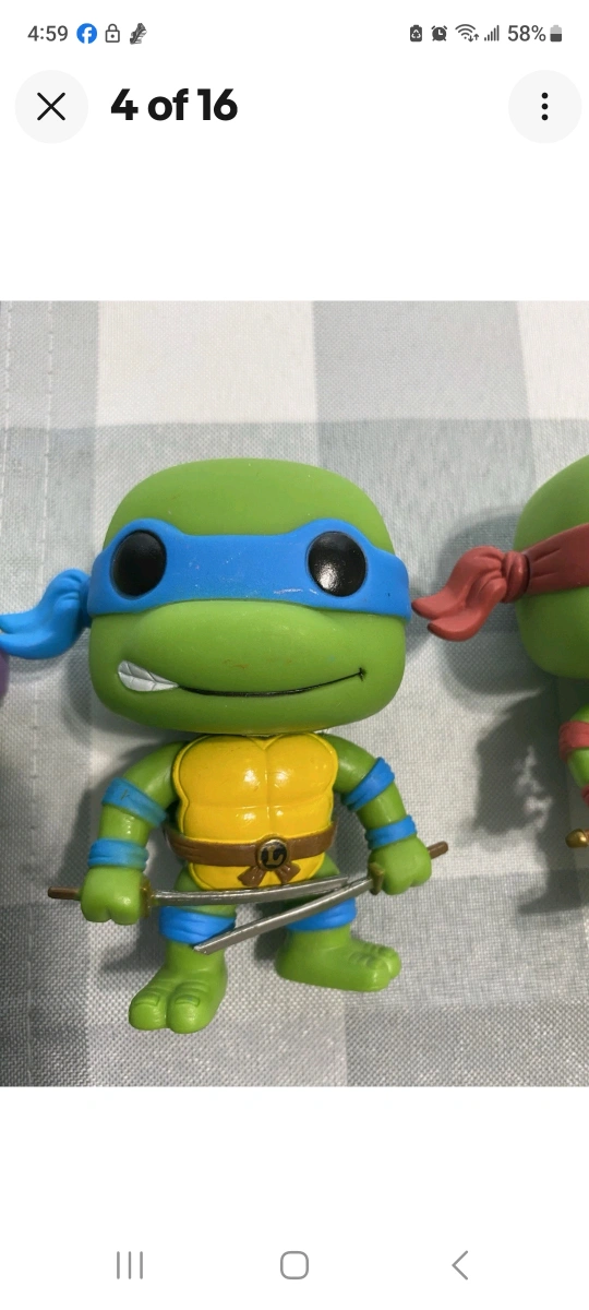 Selling a set of 2013 Funko Pop! Animated series Teenage Mutant Ninja Turtles. Each turtle is represented with their signature weapon and colour. They're in great shape and ready for a new home!