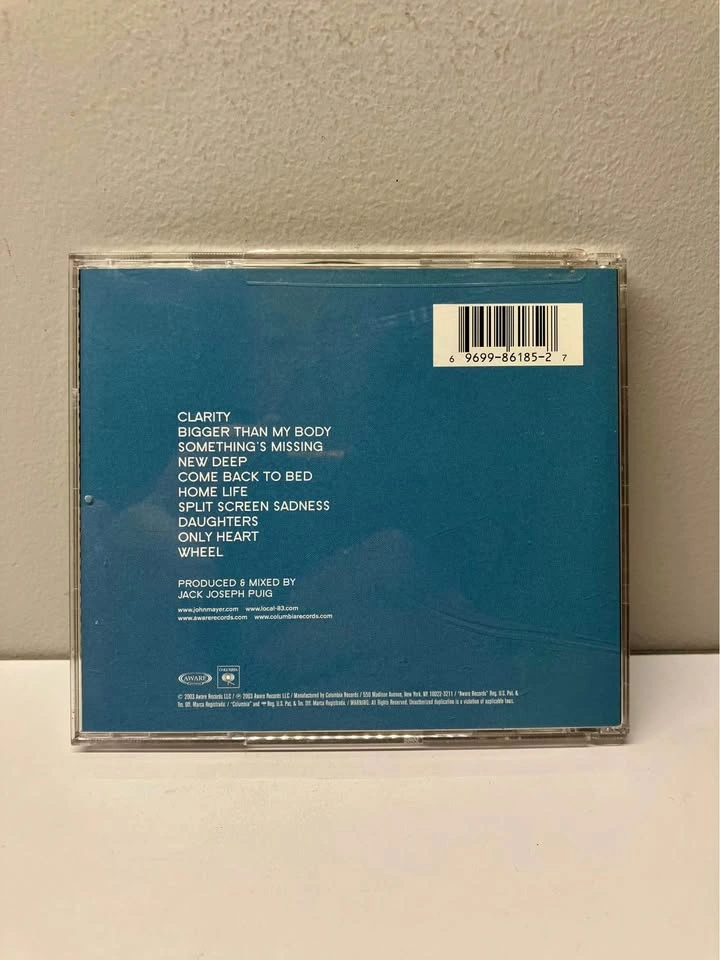 CD is in excellent condition and plays perfectly. The case has normal wear with a 1” crack in lower right corner. Includes 12 page lyric and art booklet. 2003 release track listing is as follows: 1. "Clarity" 4:28 2. "Bigger Than My Body" 4:26 3. "Something's Missing" 5:04 4. "New Deep" 4:07 5. "Come Back to Bed" 5:23 6. "Home Life" Mayer, David LaBruyere 4:14 7. "Split Screen Sadness" 5:06 8. "Daughters" 3:58 9. "Only Heart" 3:52 10. "Wheel" From a smoke and pet free home. Check out in person before purchasing. Thanks for looking.