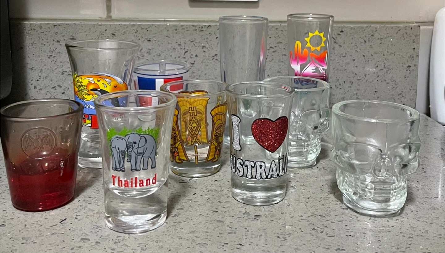 Selling a collection of souvenir shot glasses! They're from various places like Thailand, Australia, and Hawaii. Priced at one dollar each 🥰 Great for collectors or anyone who wants to collect from places around the world.