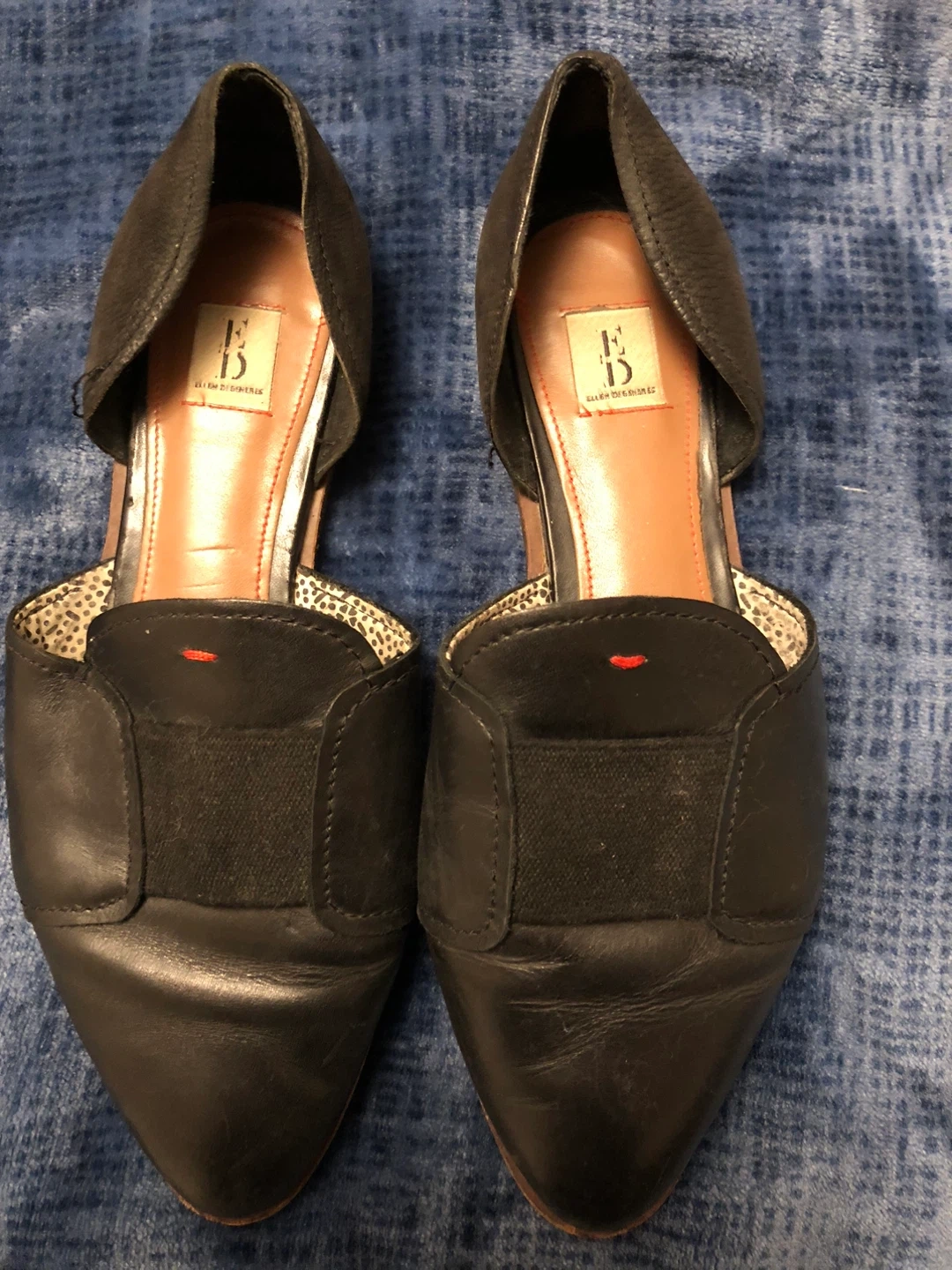 Selling a pair of ED Ellen DeGeneres black leather flats in size 7.5. They're in good condition and have a stylish, comfortable design. Perfect for everyday wear!