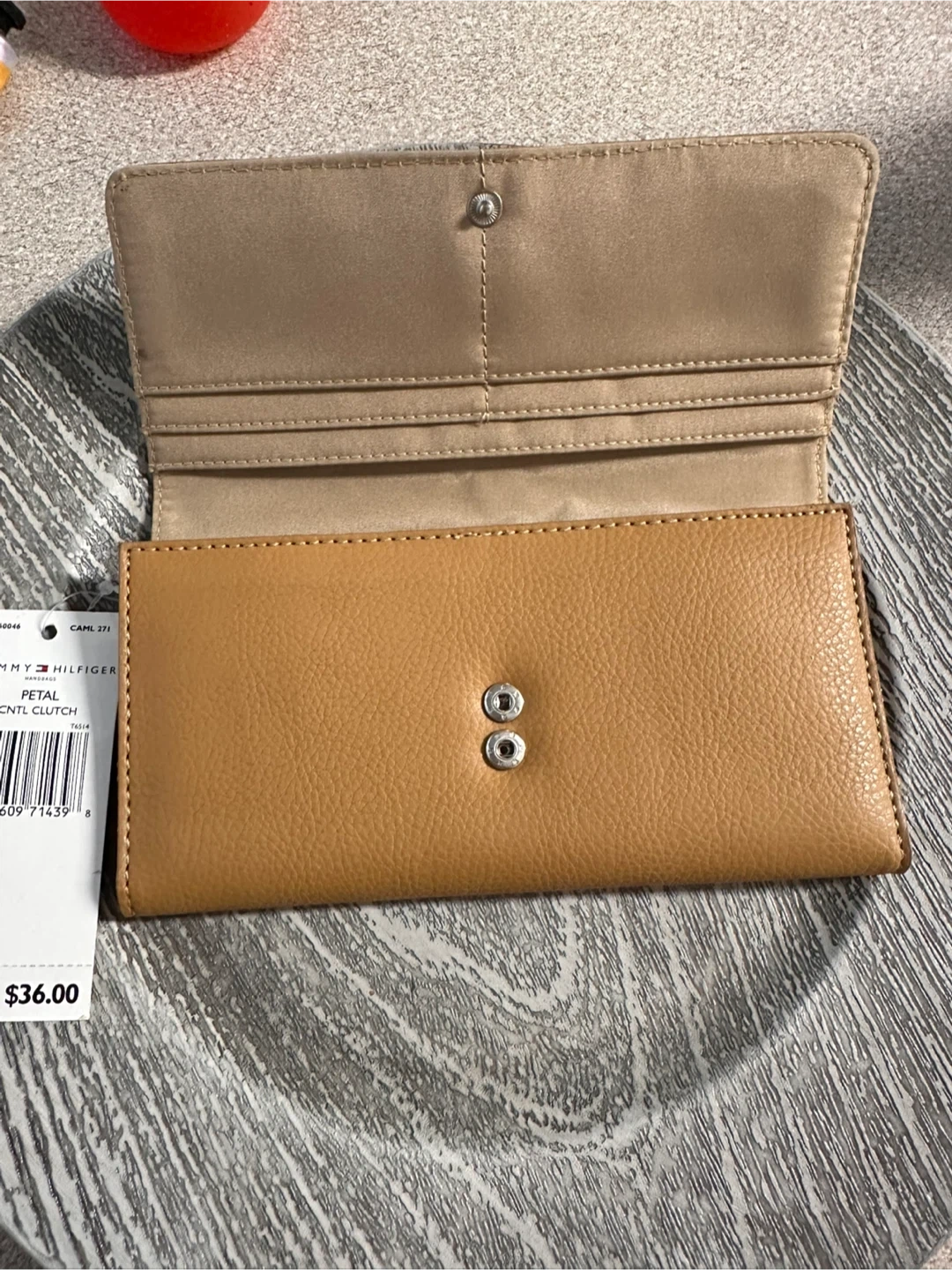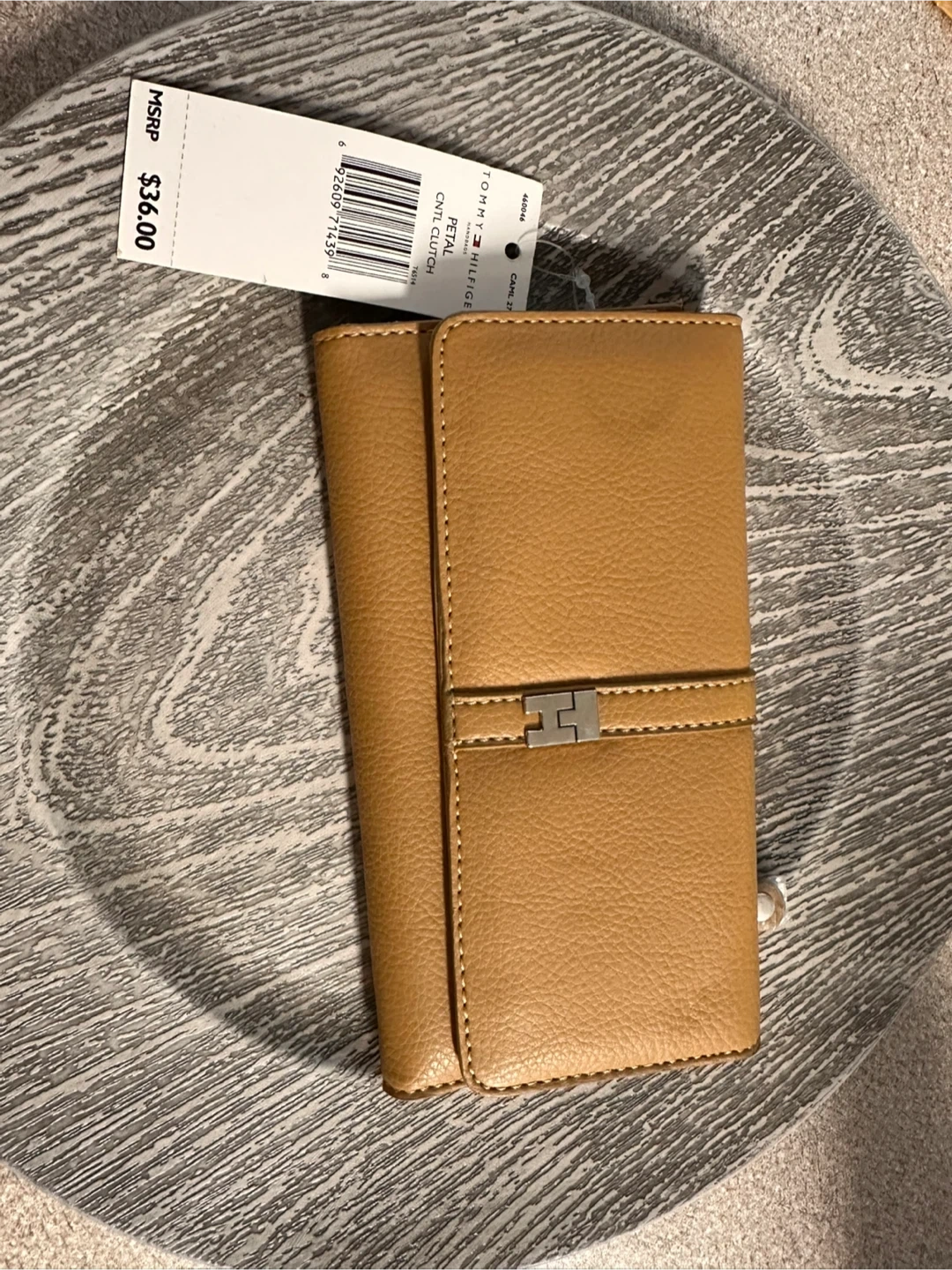 Tommy Hilfiger clutch in a lovely tan colour. The tag shows an original price of $36.00. It's in great condition and ready for a new home!