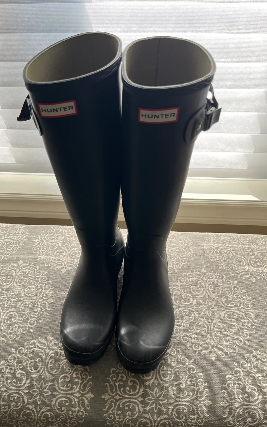 Hunter rain boots in a matte black colour! These are a US size 9/10 (UK 8, EU 42). Perfect for rainy days or gardening
