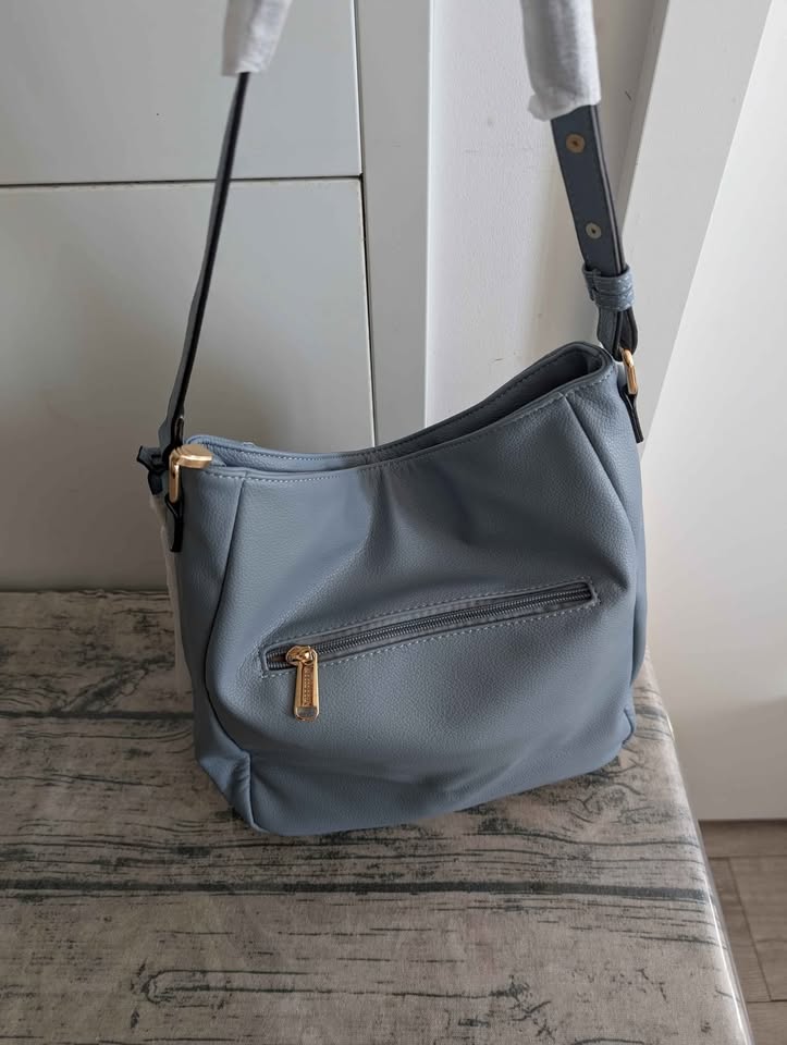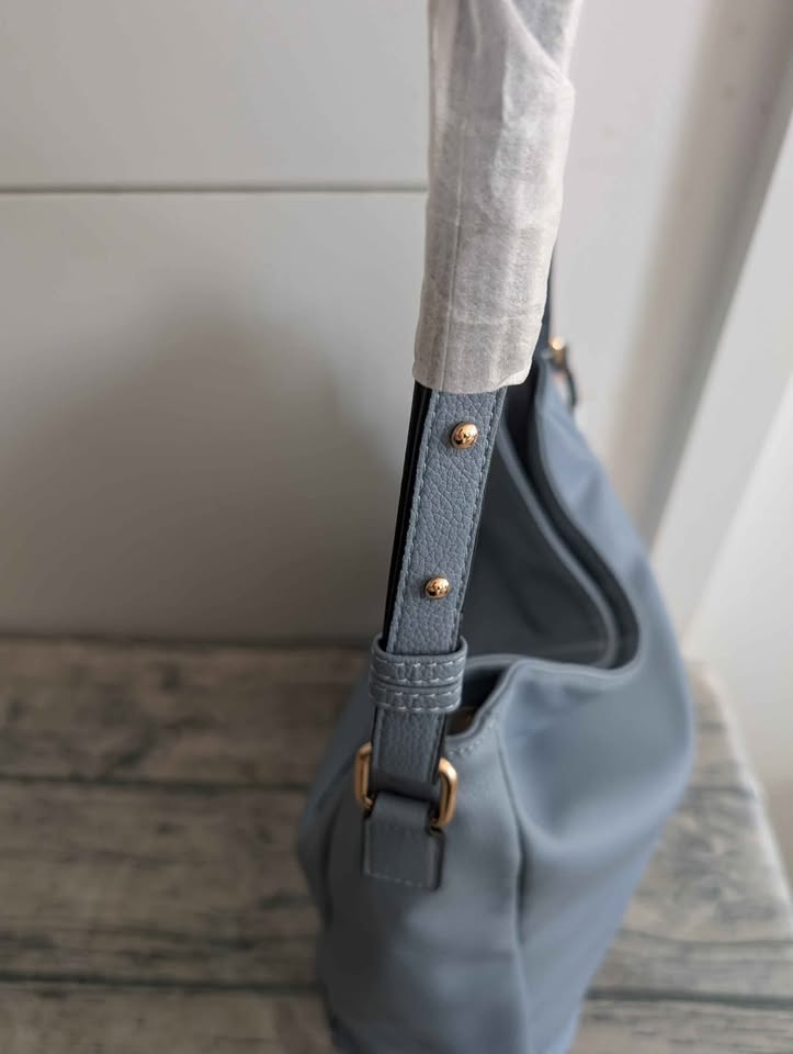 Selling a brand new hobo bag in a beautiful blue-grey colour! This stylish and versatile bag is perfect for everyday use.