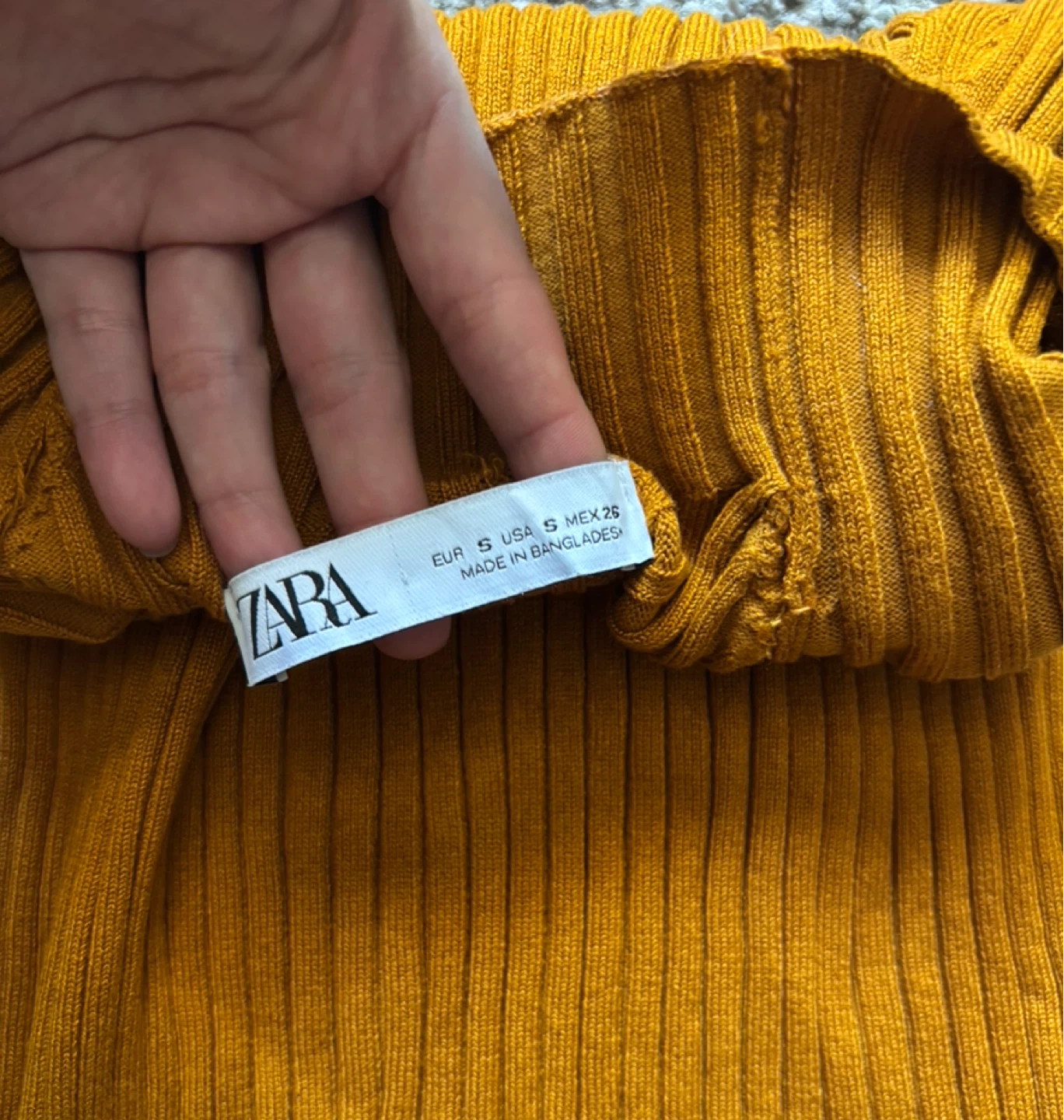 Zara Mustard Yellow Ribbed Knit Top - Size S