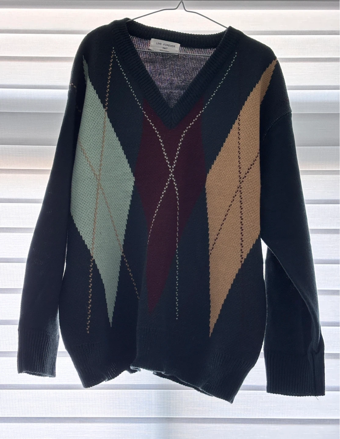 Selling a cozy knit sweater with a classic argyle pattern! It’s quite used but still in great condition and perfect for adding a touch of vintage style to your wardrobe!