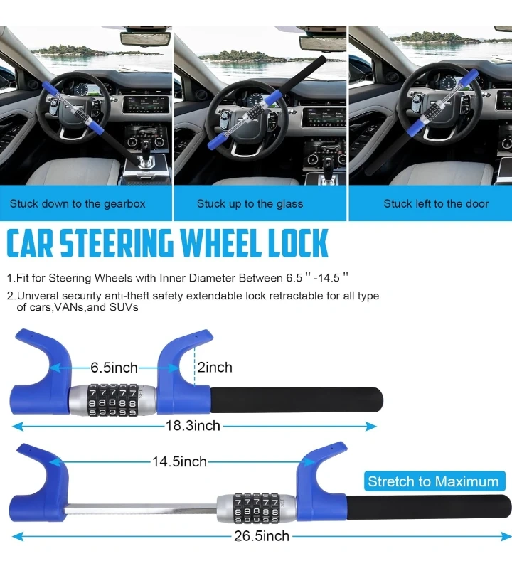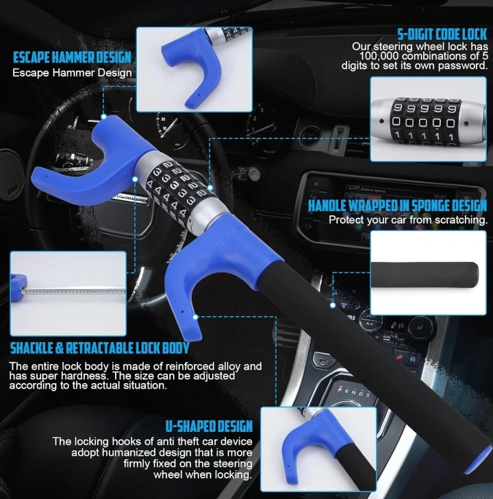 29198% New, 100% Works, $26 Antitheft Car Lock 5 Digit Combination Steering Wheel Lock Uses: Universal Vehicle car Truck Van SUV Password Code: You set your own. Material: Heavy Security Guard Steel Plastic:Blue 48.8 x 14 x 6.4 Centimetres Including: 1x Steering wheel lock, 1x Screw driver. STRONG VERSATILITY: Twin U Type lock fork Extendable and retractable lock, fit most of steeling wheel diameter range from 7-15.5 inches (18-39cm). Universal fit for cars, vans, trucks and SUVS HYDRAULIC SHEAR: The lock body reinforced alloy molding, anti cutting, anti drilling, sawing prevention, prying prevention. adjust the size of tensile lock body according to the actual situation , convenient and practical. HIGH SECURITY KEYLESS LOCK: Password protected, needless to carry a extra key with you. Mechanical digital password lock is relatively stable, durable, sturdy and reliable, does not need a key to open, preventing a universal key, 5 digit password to open, actually has a large number of password, password combination up to 13 million. ##### First Come First Serve, No holding for anyone who says I am comimg to get it. Only for serious buyer. What You See Is What You Get (WYSWYG) Sold AS IS condition and no return policy after the point of check out. Accept CASH only AND face to face trade ONLY. DO NOT accept PayPal or e-cheque! If ( you are a Scammer, please stay away from me by God's sake! Jesus Christ is God and can be your saviour too.) Location at Thornhill Vaughan to pick up: (use Google Map copy and paste ): 43.806683,-79.456018 88-735 New Westminster Dr, Thornhill. (***please noticed that I am not living at unit 88, but there is a small parking area next to an entrance of a basement carpark, I need to walk out there to meet you in 2 mins***) Or use link in Google Chrome: https://maps.app.goo.gl/iybEFxbi3cHE7RqJA Please click into my profile listings to see which may also fit your needs. Scammer: God Jesus Christ protects me! HE can be your saviour too if you repent and return to God TODAY!
