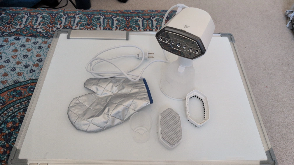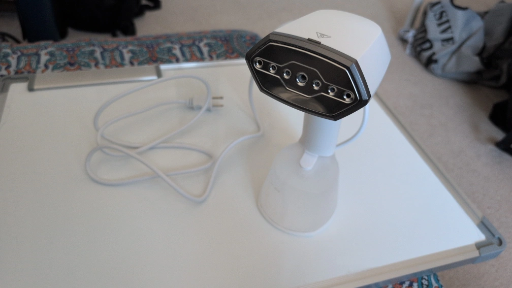 Selling a brand new ELORTI garment steamer! It comes with the original box and all included components. This is a great little steamer for quick touch-ups and travel. Get your clothes looking fresh and wrinkle-free in no time!