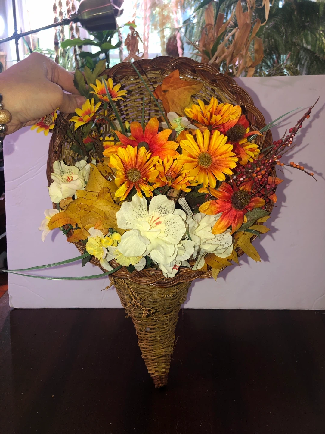 Extra Large Wicker Horn with Flowers. 19” long 20” wide Good condition $20 Cash or e-transfer Coliseum Area / Elmwood Park Shipping extra