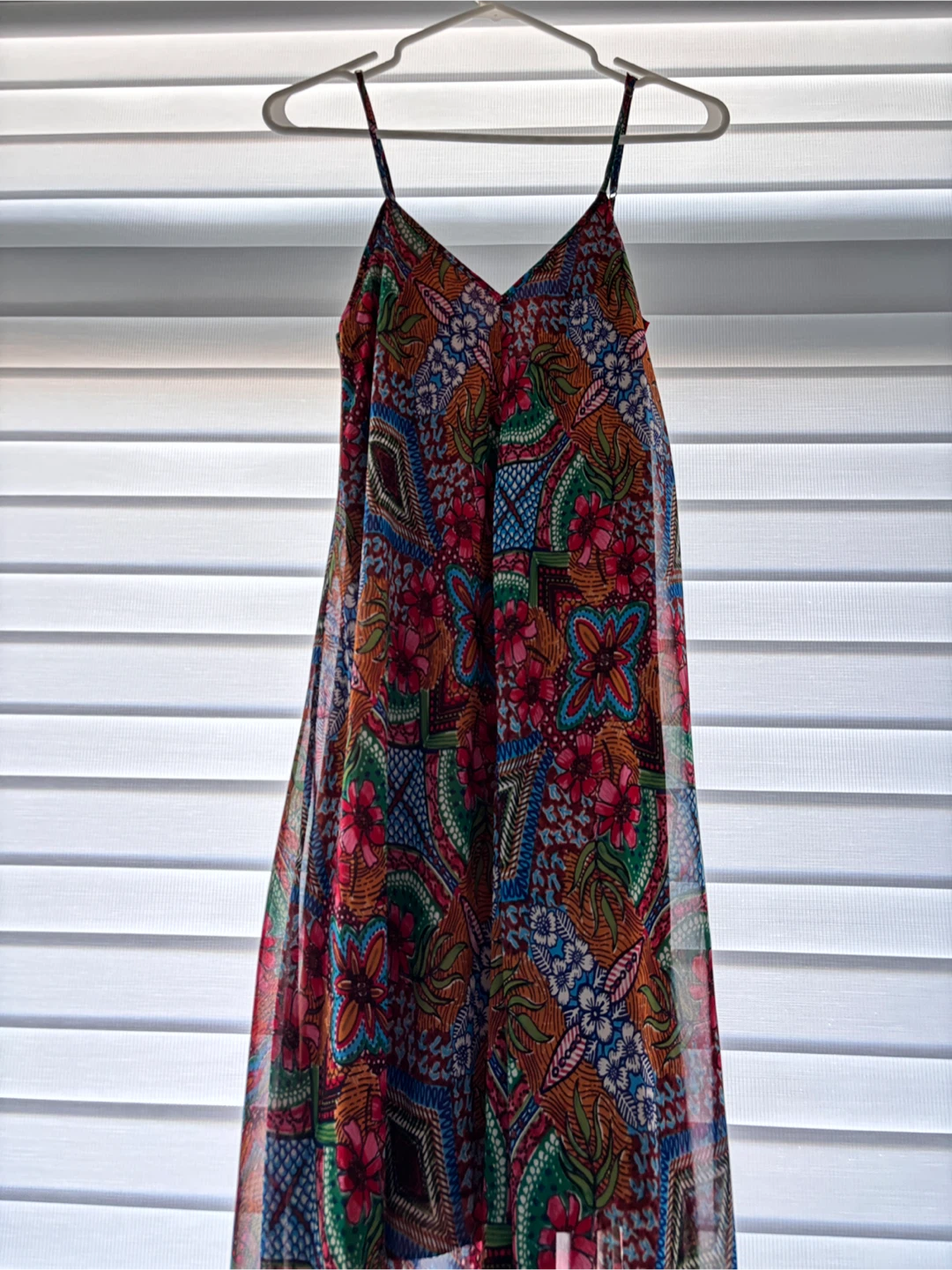 Selling a cute sundress with a colourful pattern. It's perfect for summer days and evenings. The dress is in great condition and has adjustable straps for a comfortable fit