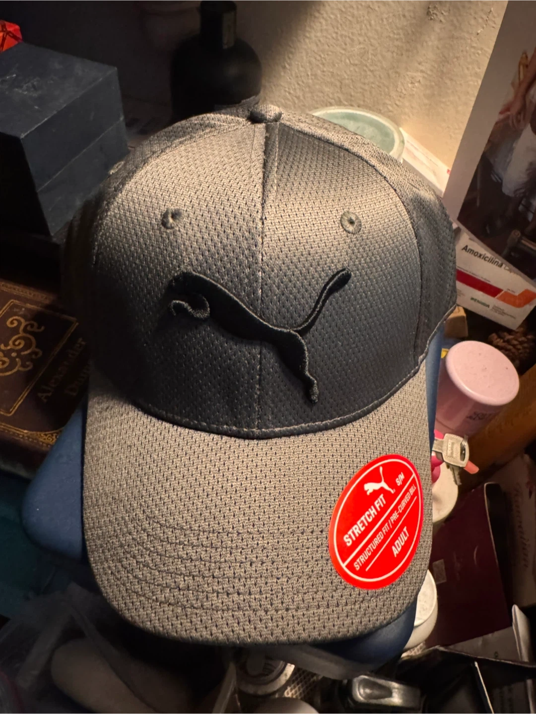 Selling a Puma stretch fit adult hat in gray! It's in great condition and ready for a new owner. The hat features a structured fit and is designed for adults.