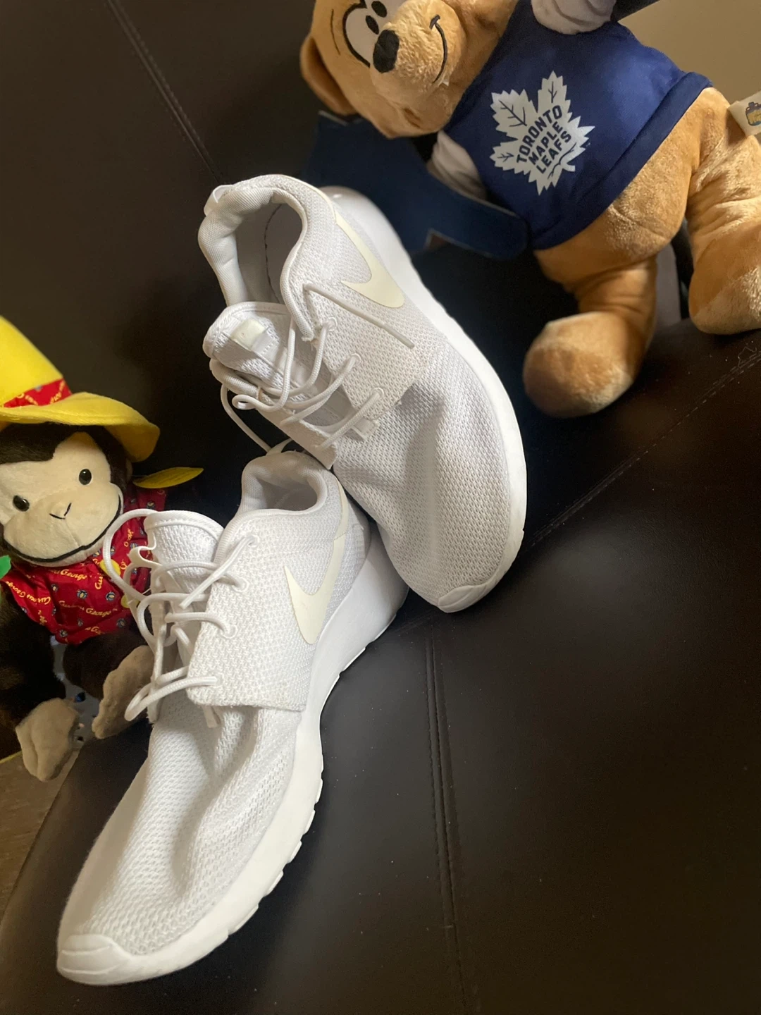 60Selling a pair of Nike Roshe One sneakers in white. They are in great condition and are a US size 10. Perfect for everyday wear!