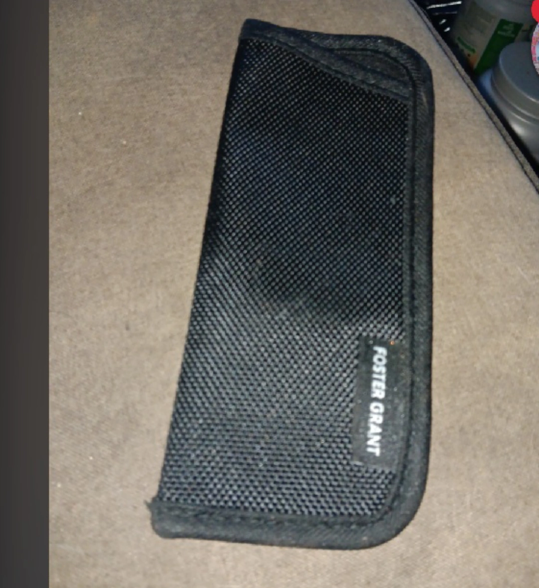 black glasses case from Foster Grant. It's in great shape and ready to protect your specs!