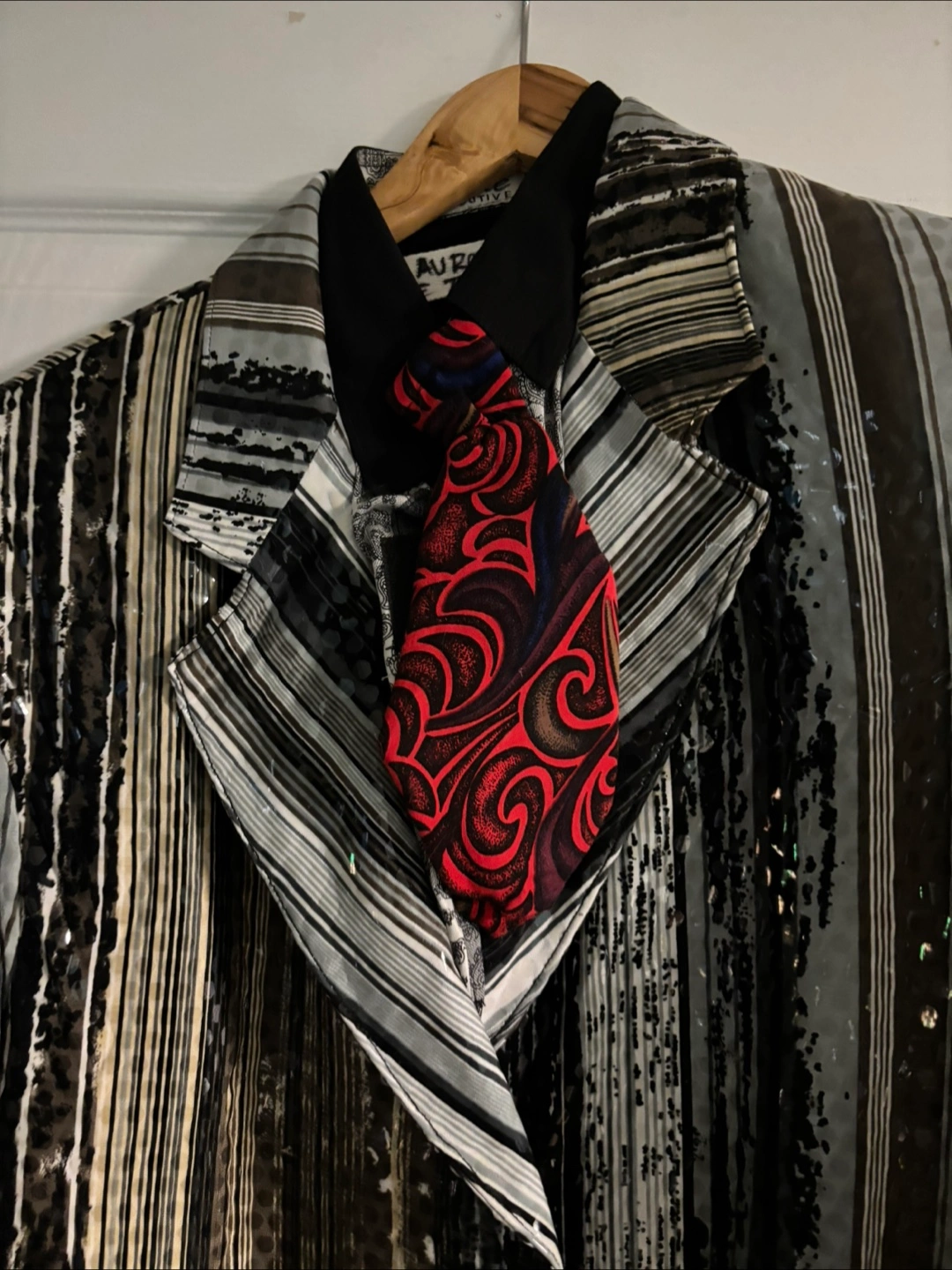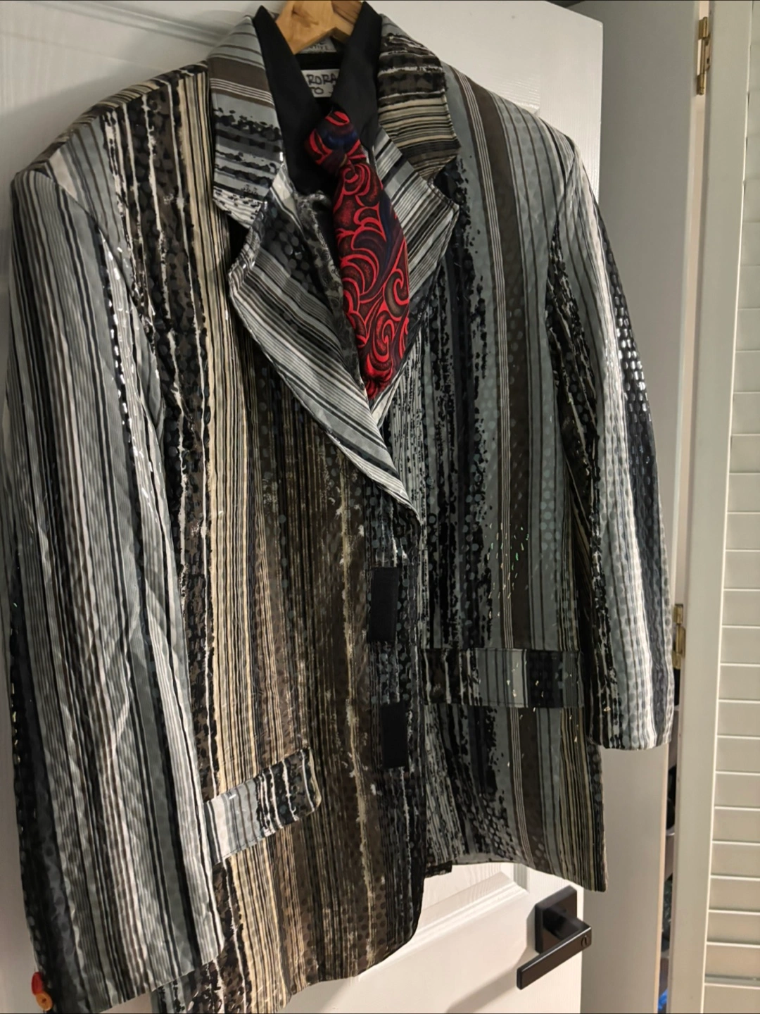 Selling a unique blazer with a striking striped pattern. It's in great condition and ready to add some flair to your wardrobe! The blazer features a distinctive design that is sure to turn heads.