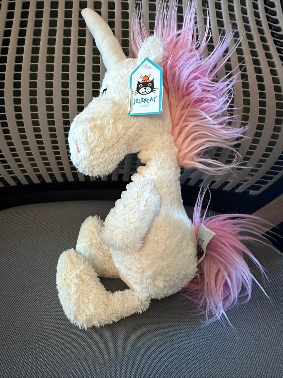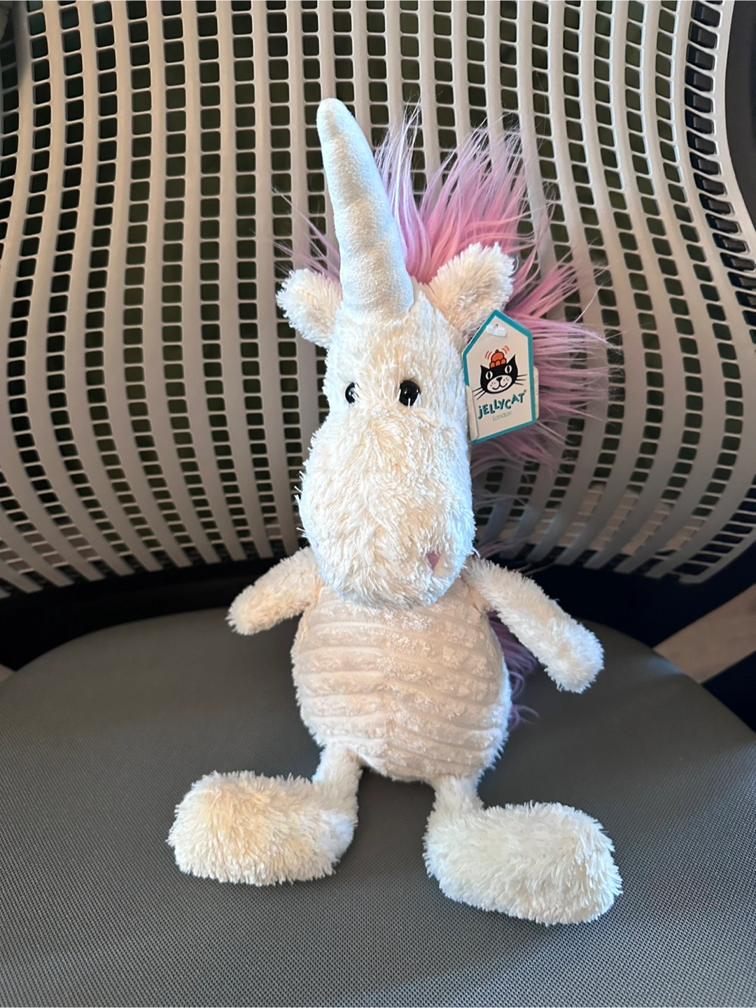 Selling a super cute Jellycat I am Ursula Unicorn plush toy with tag! This soft and cuddly unicorn features a white body with a lovely pink mane and tail. Perfect for kids or collectors!
