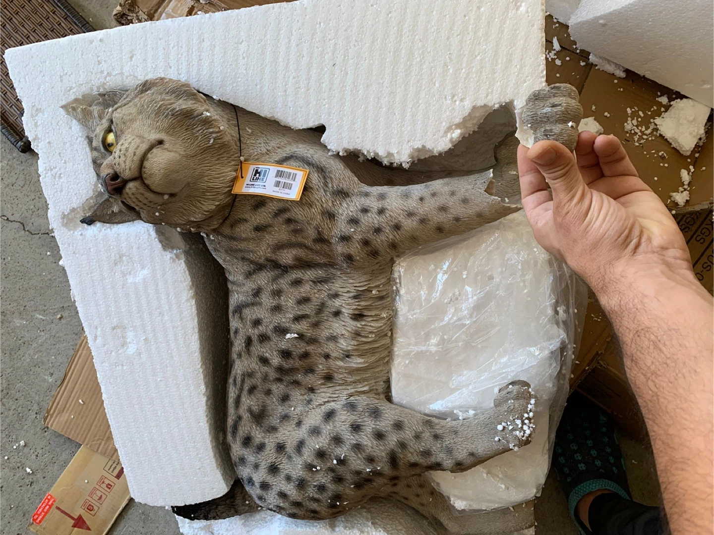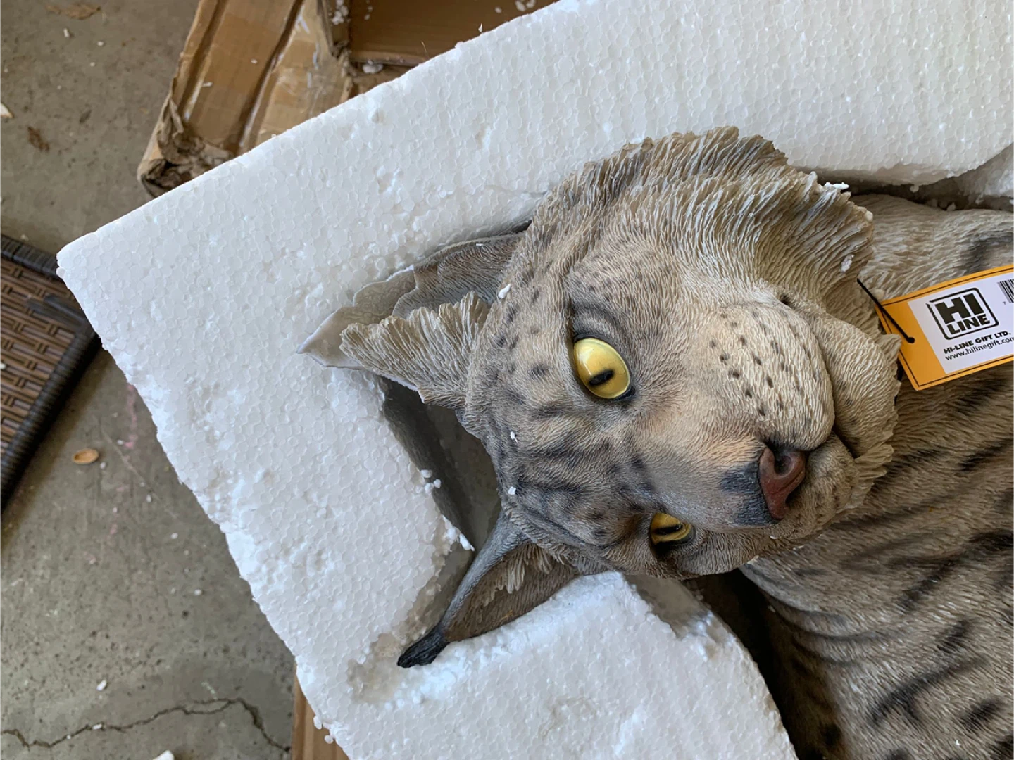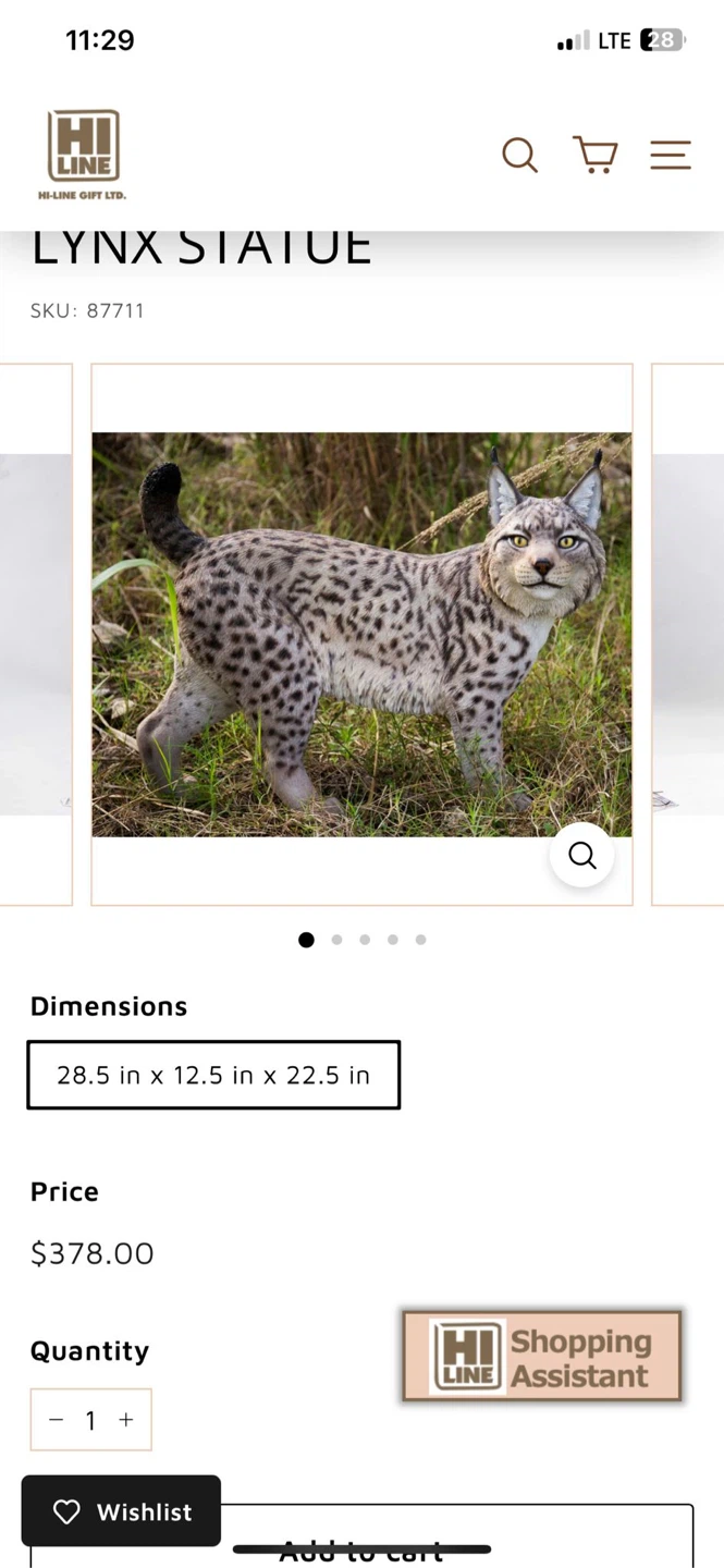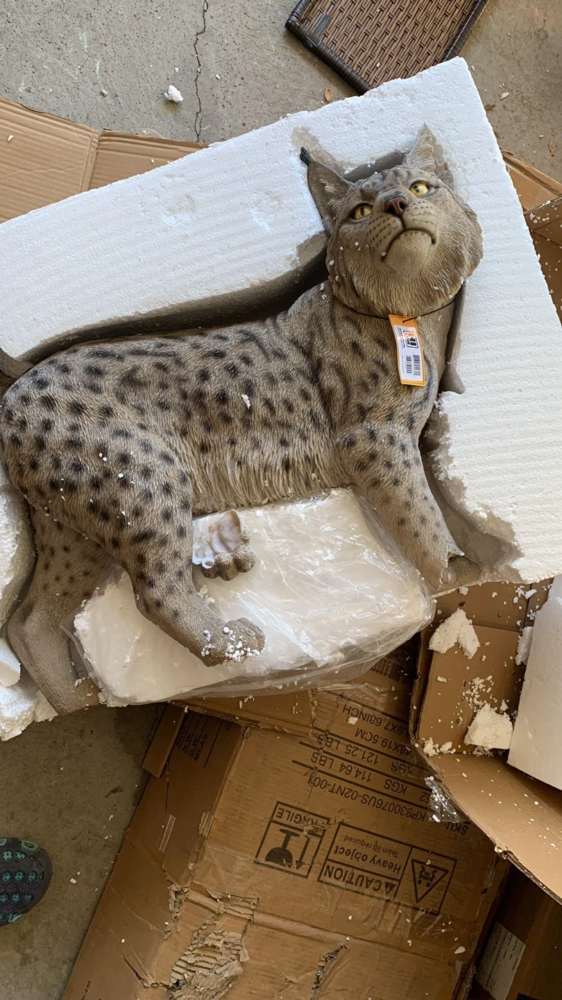 I have a Hi-Line Gift Lynx Statue for sale! It is in great condition and comes in the original box. Dimensions: 28.5 in x 12.5 in x 22.5 in Broken foot fixable for some one has knowledge about arts. 100 priced to sell One ear also has someparts cracked will show it in the picture