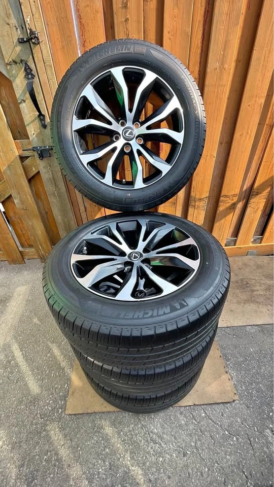 OEM Lexus rims paired with Michelin Primacy MXM4 tires, size 225/60R18. Super clean set with excellent tread depth (8/32”), no damage, no curb rash, and ready to install with sensors included. Smooth, quiet ride from premium Michelin tires. Perfect upgrade or replacement for RX, RAV4, Highlander, CR-V, and more. Serious buyers only.