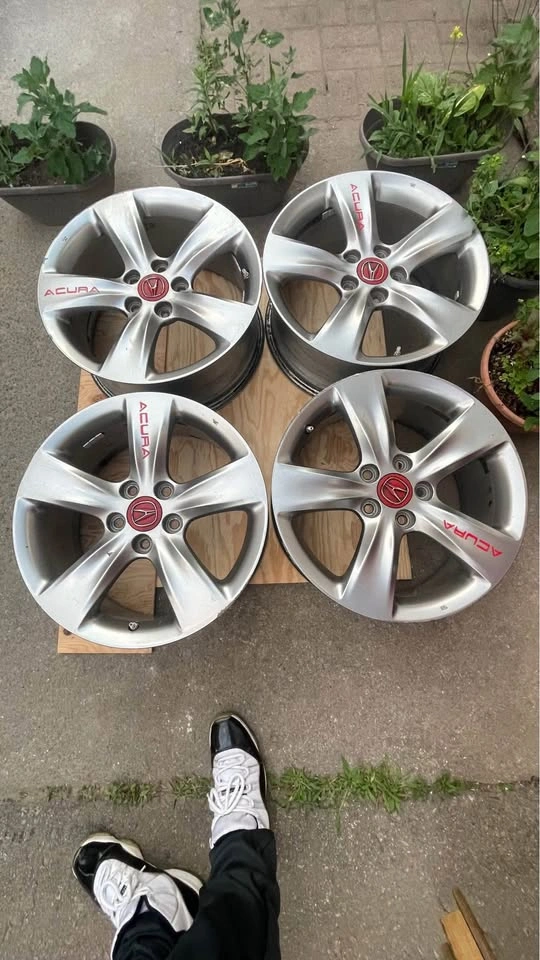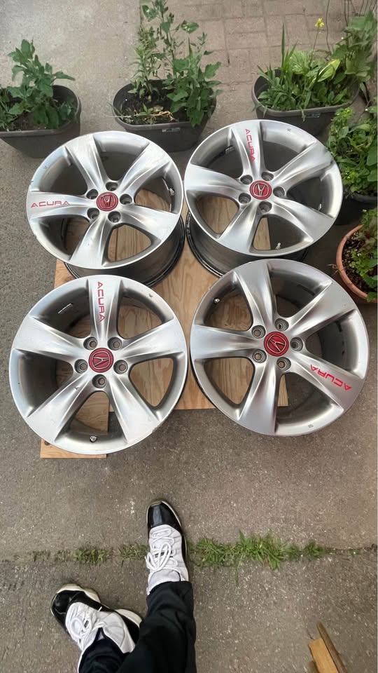 Minor curb rashes original TPMS no other cracks or bends or major damages. Acura written on the rims, and red sport style center caps. Midland and Danforth.