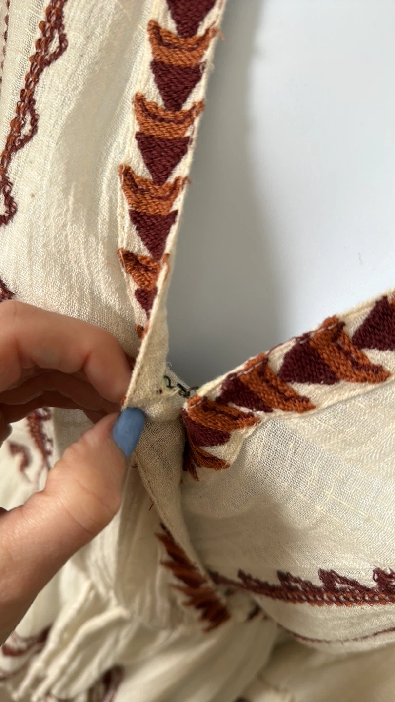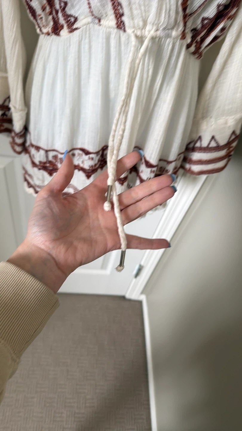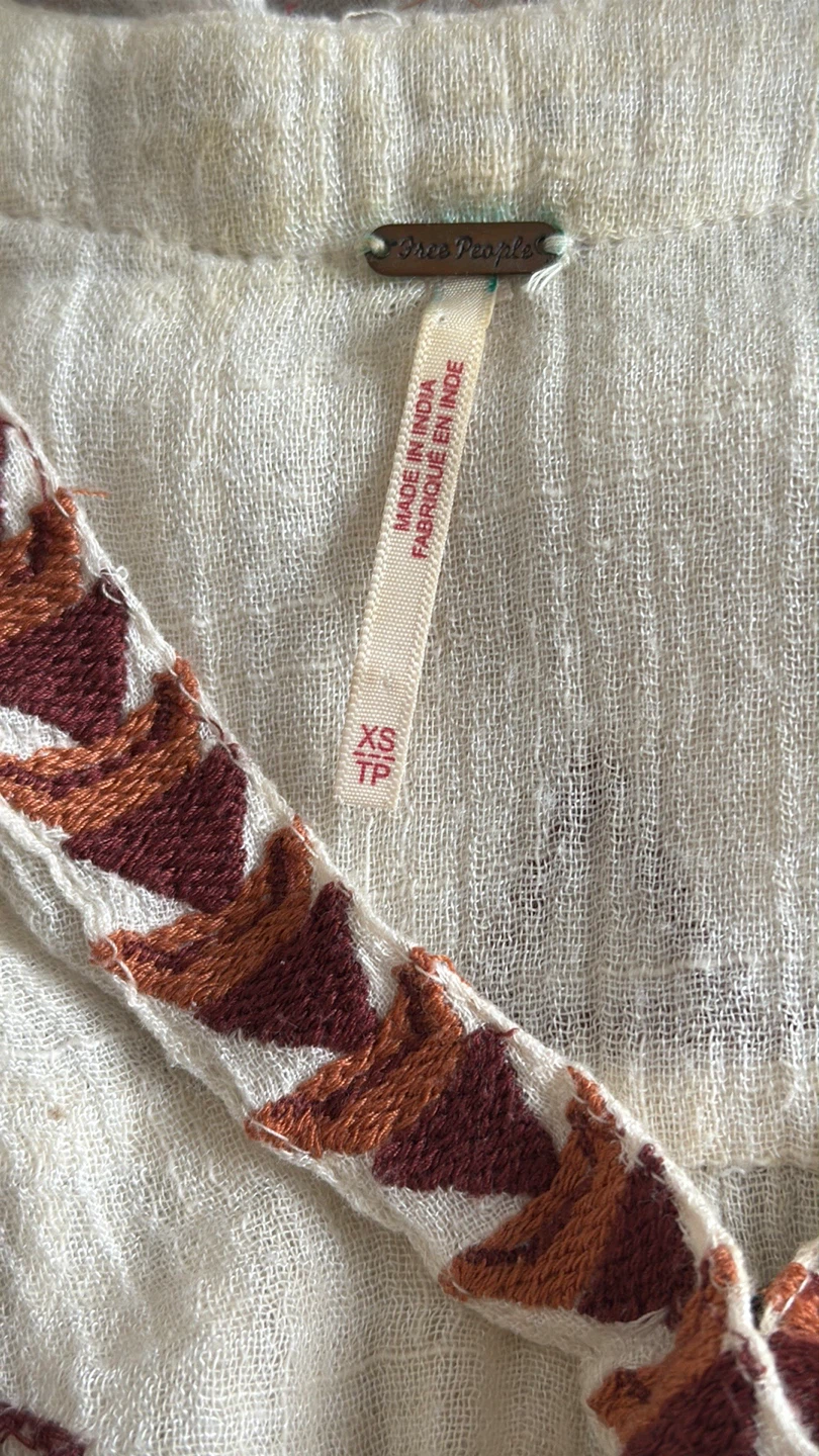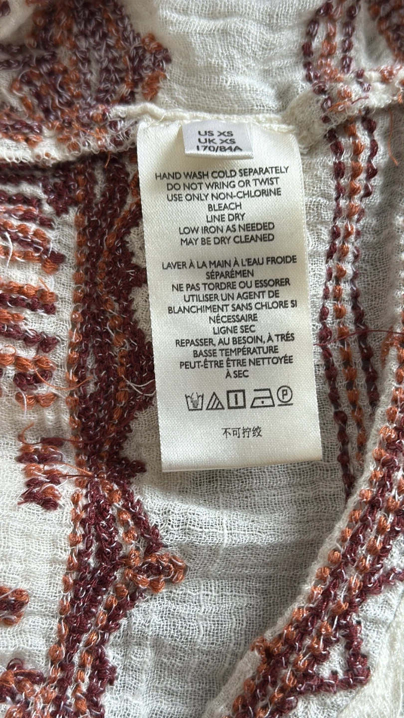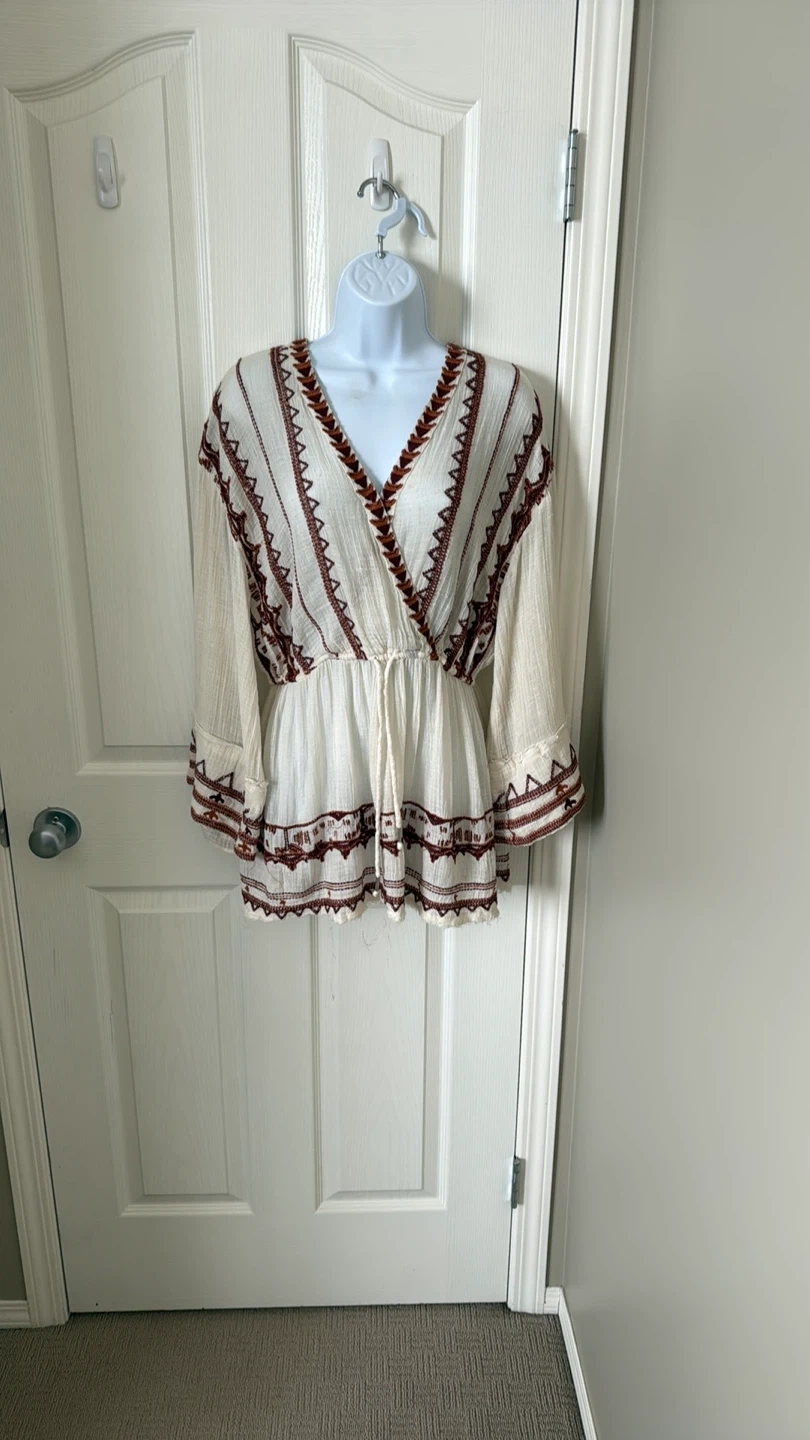 Great condition colorful embroidered trim details V-neck Long sleeves Slips on over head 59% cotton, 41% rayon Hand wash Fit: this style fits true to size Size: XS Bust : approx 20" Length : approx 32” Smoke free home Pick up in Wolf Willow SE