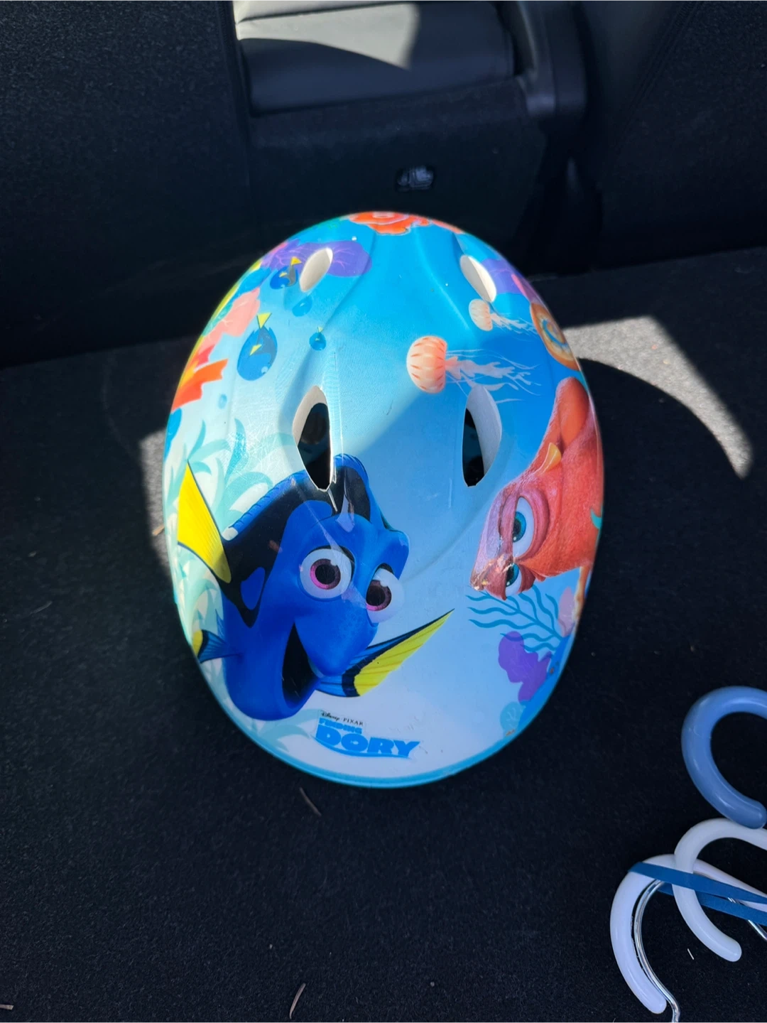 Kids bike helmet with a Finding Dory theme! It's blue with Dory and other sea creature designs. Perfect for keeping your little one safe and stylish on their bike rides