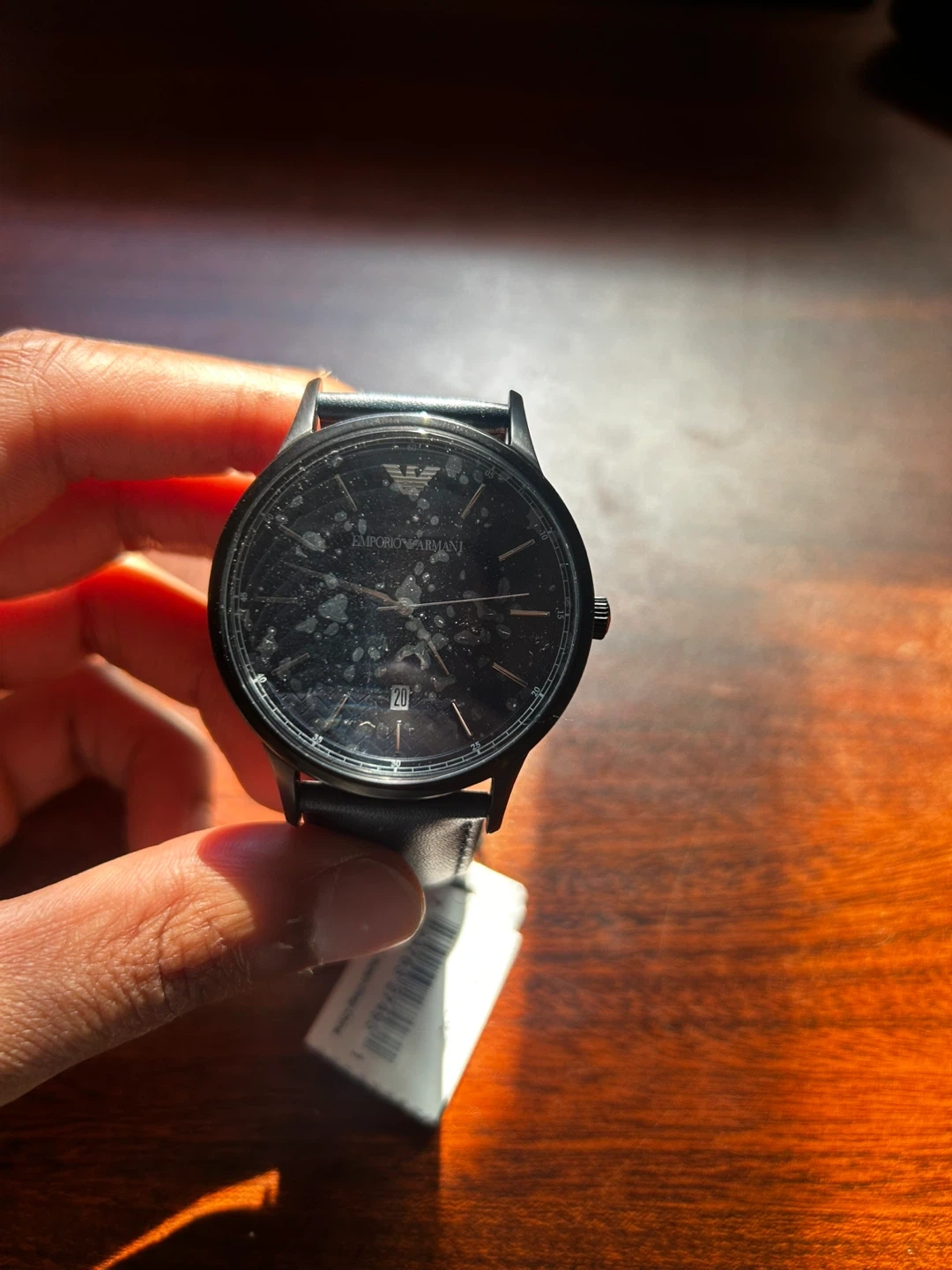 The face still has its plastic covering it which is why it’s not clear.