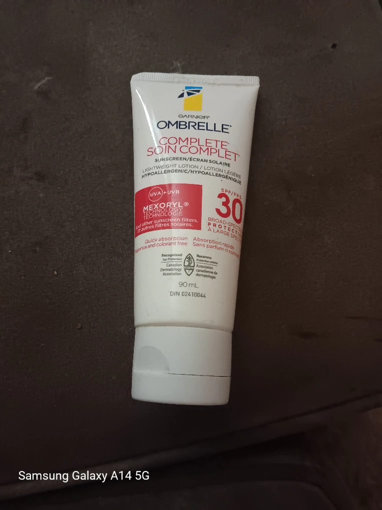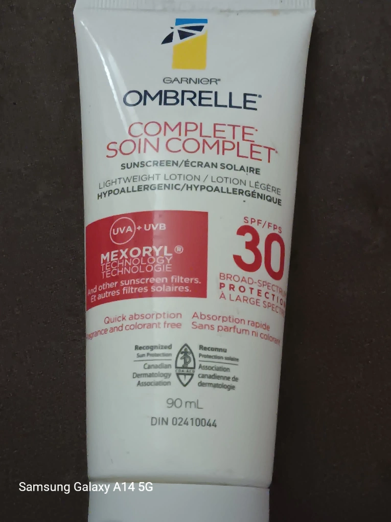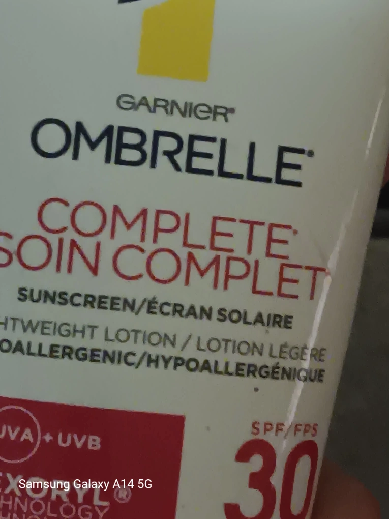 Selling a tube of Garnier Ombrelle Complete sunscreen with SPF 30 ! It's a lightweight, hypoallergenic lotion that provides broad-spectrum UVA and UVB protection . It comes in a 90 mL size and is designed for quick absorption and is fragrance and colorant free. Recognized by the Canadian Dermatology Association! 647-203-0411