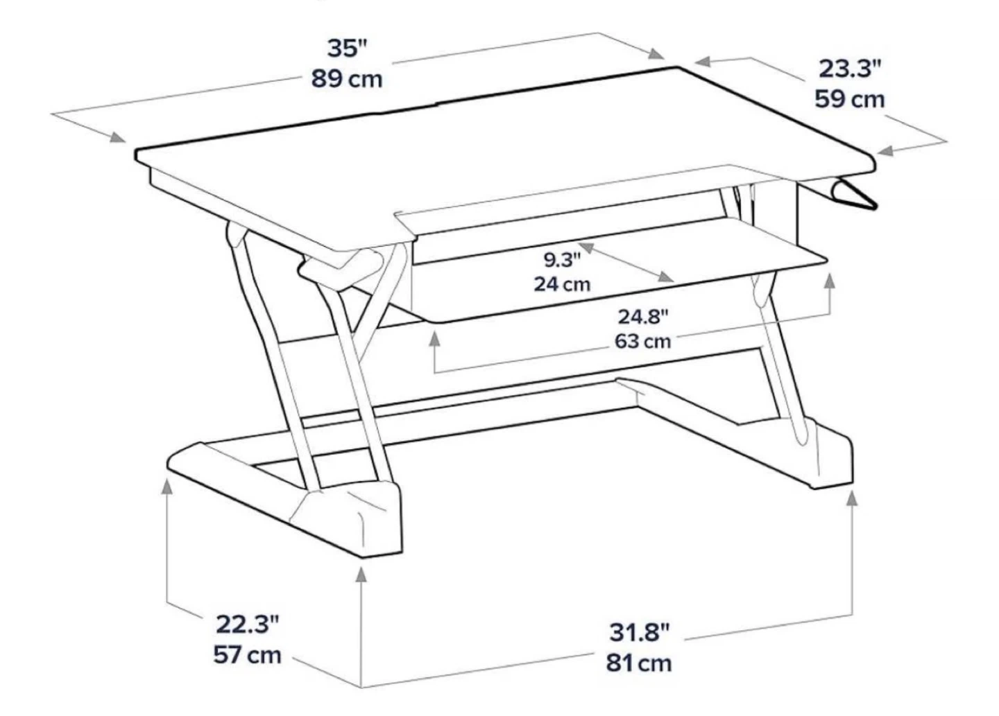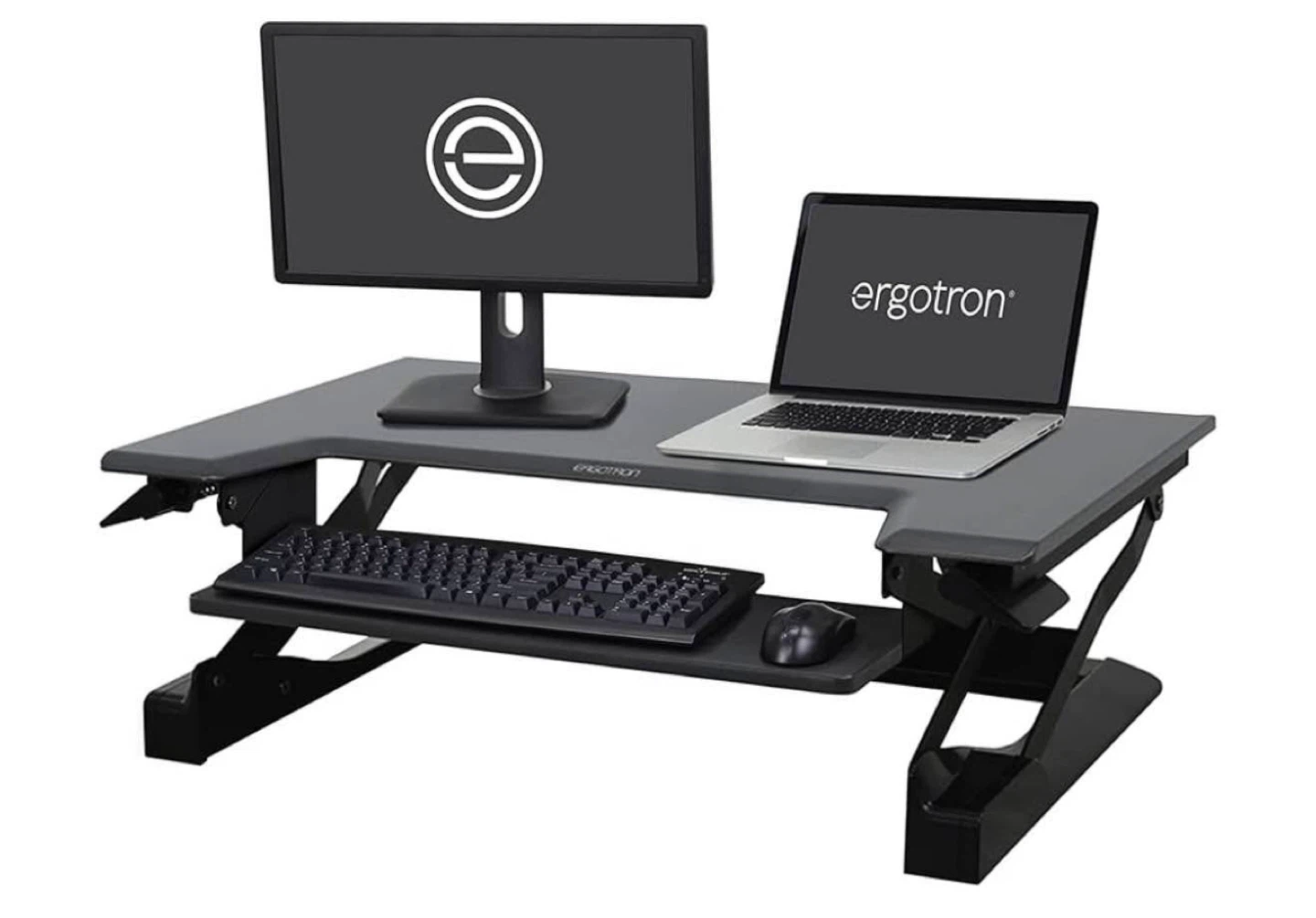 More details here: https://www.amazon.ca/Ergotron-WorkFit-T-Standing-Converter-Tabletops/dp/B00QL6IGWQ