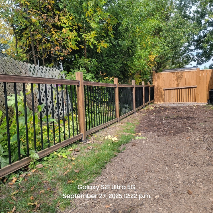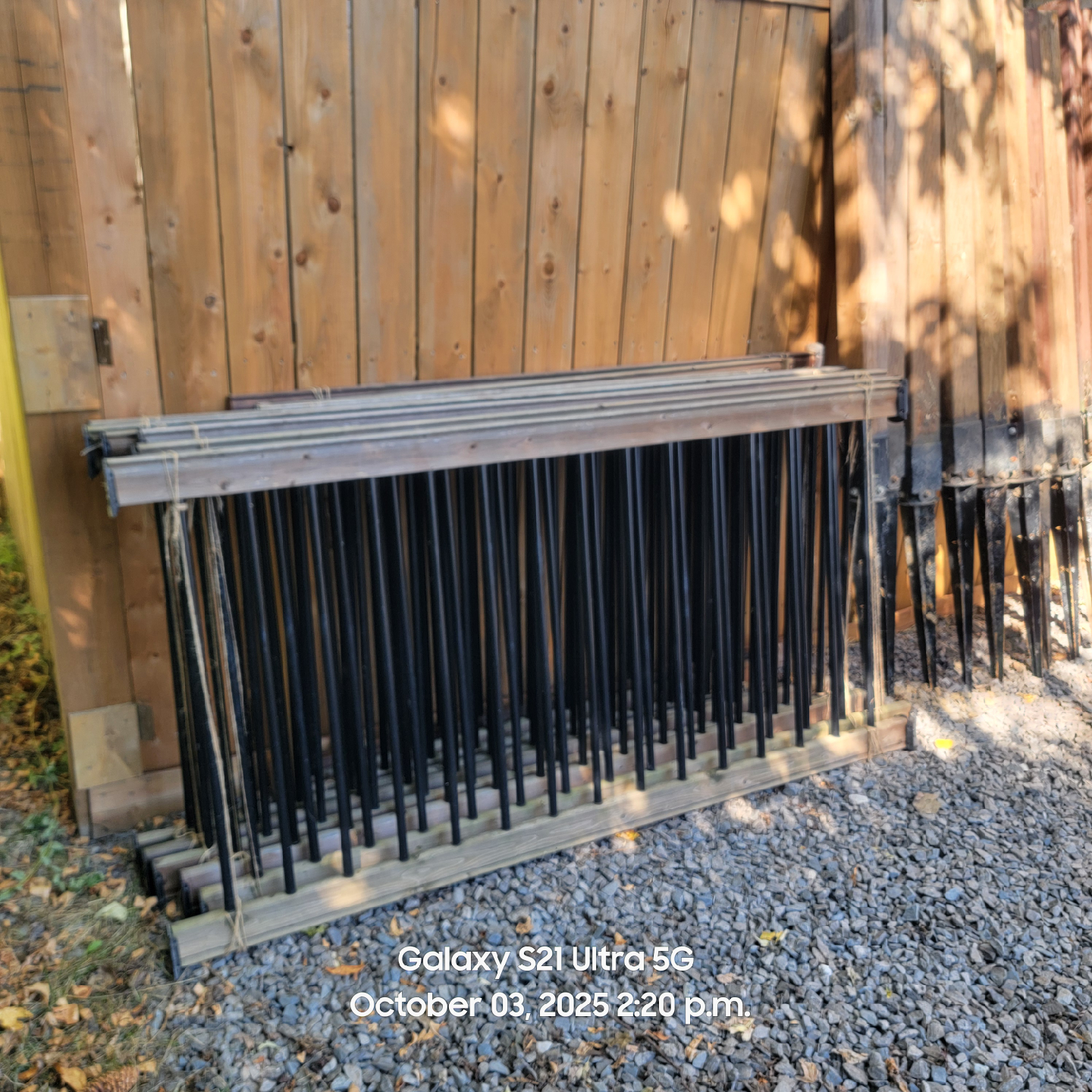 Wood Rail Fence or Deck Rail. In excellent condition. Enough to cover 53+ feet. No soil drilling necessary. Or use for railing on wood deck. See example picture. Many other uses such as for a dog pen, garden area, etc. Available on Regatta Drive in Welland. About $1,700 in value. Selling as neighbour is getting new fence.
