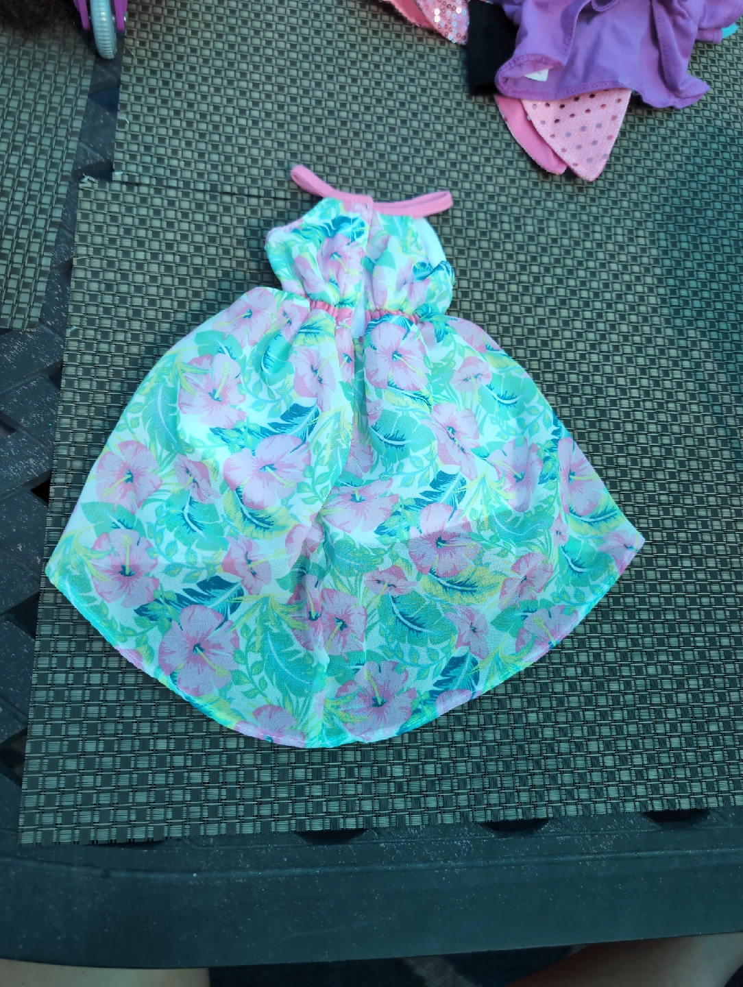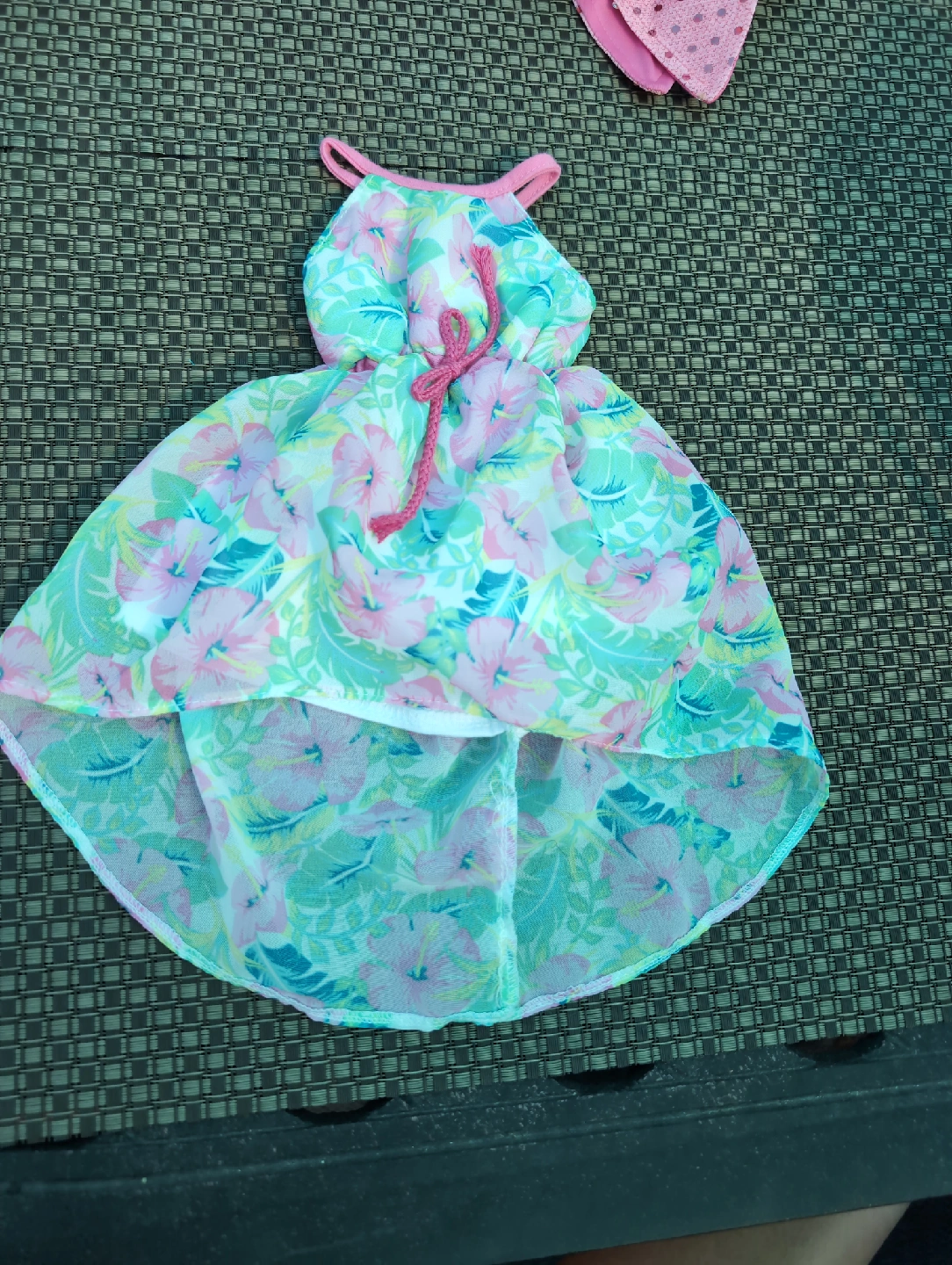 This is a cute dress with a floral print design. It features a halter neck and a high-low hem. Perfect for a sunny day with your dolls ! need gone ASAP!
