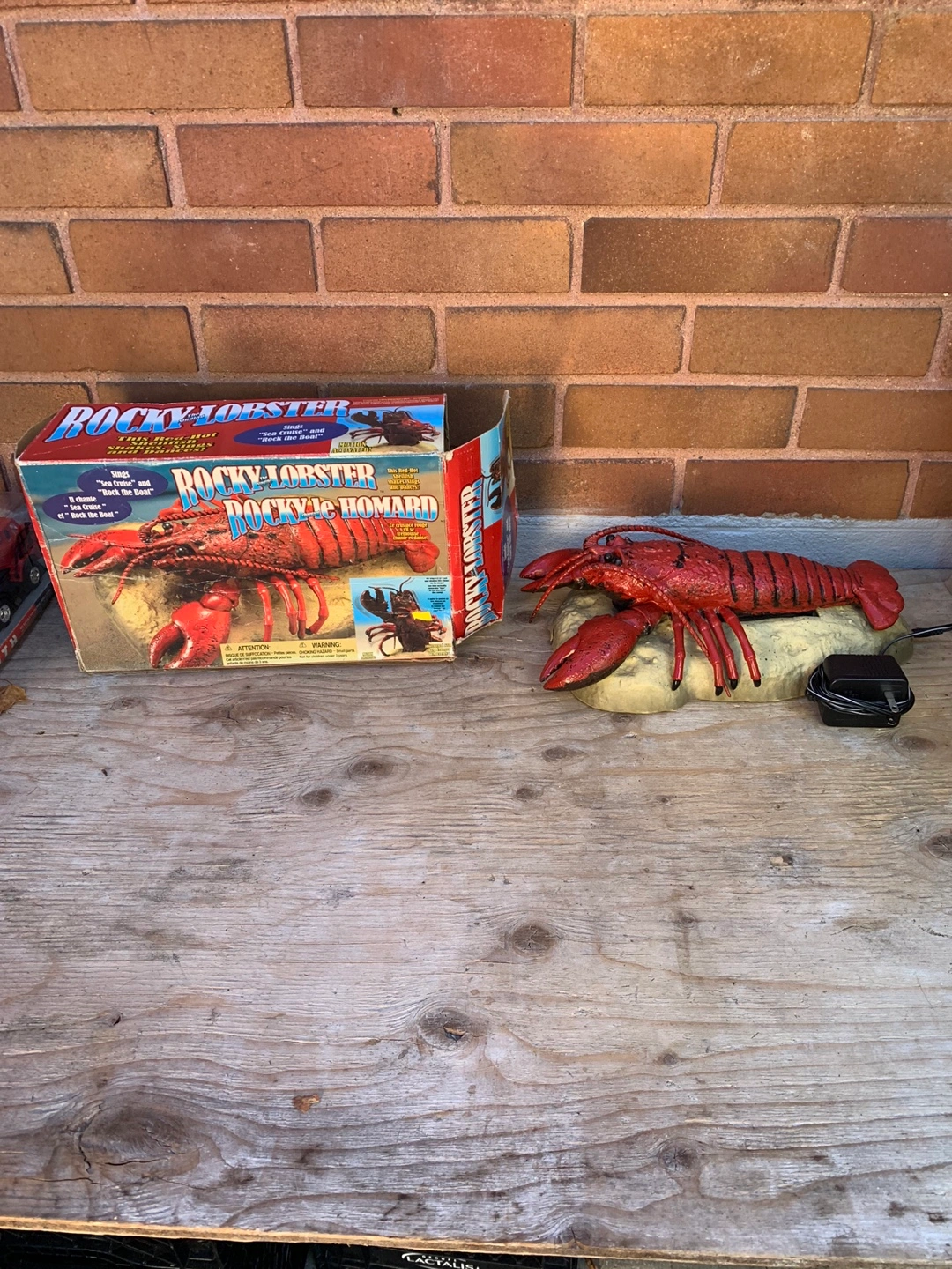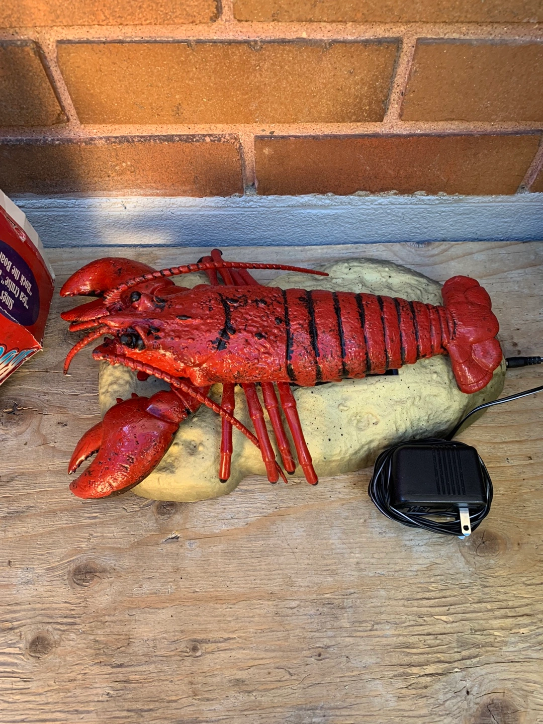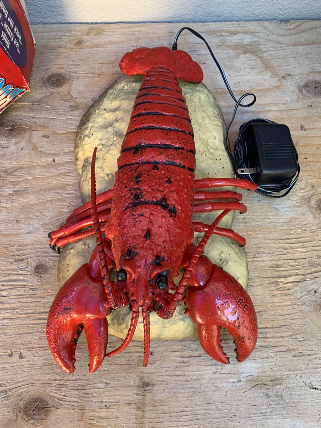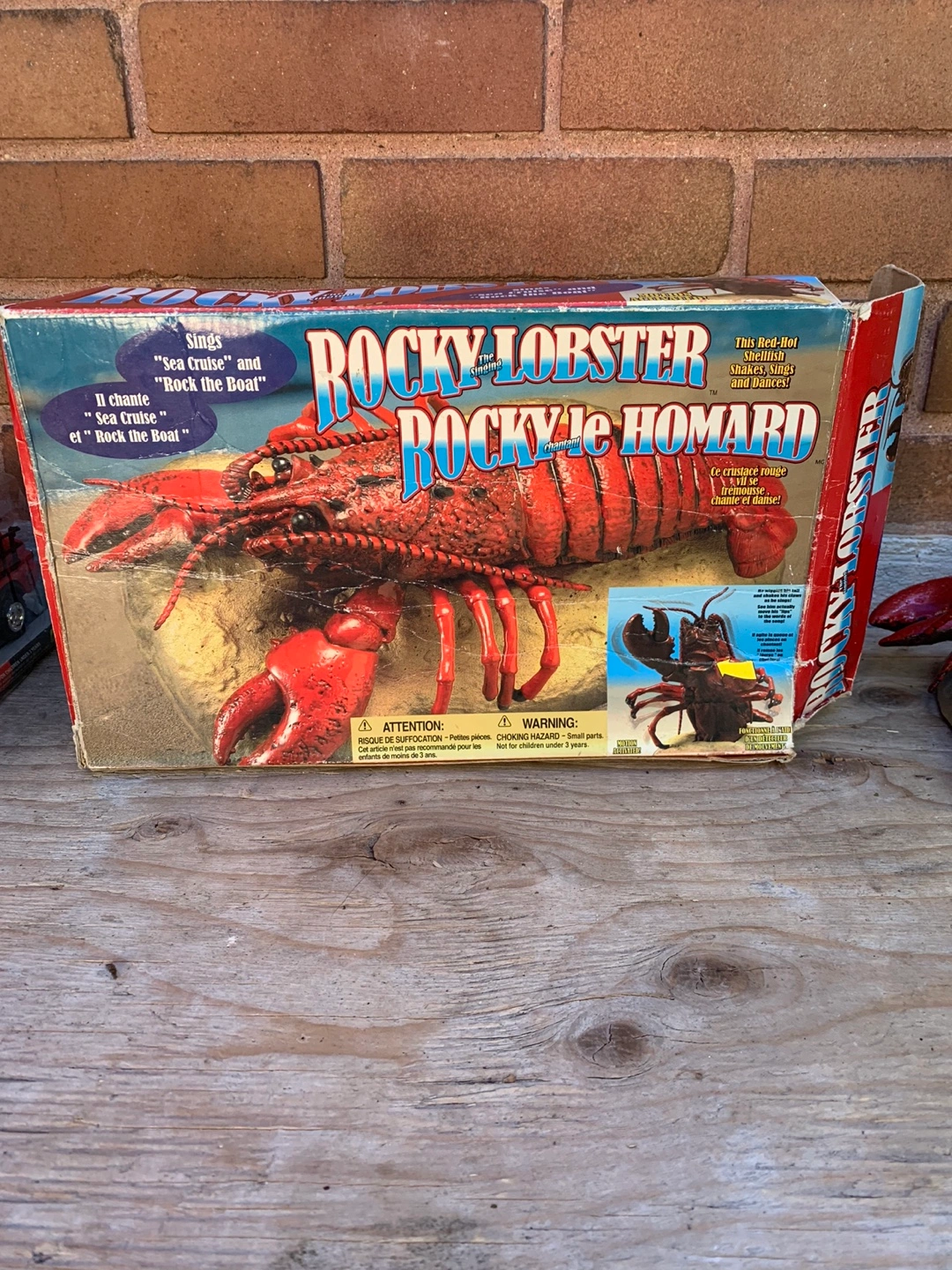 Selling a Rocky the Lobster animated decor piece! Comes with the original box and the power adapter. This red lobster sings and dances. It chants "Sea Cruise" and "Rock the Boat".