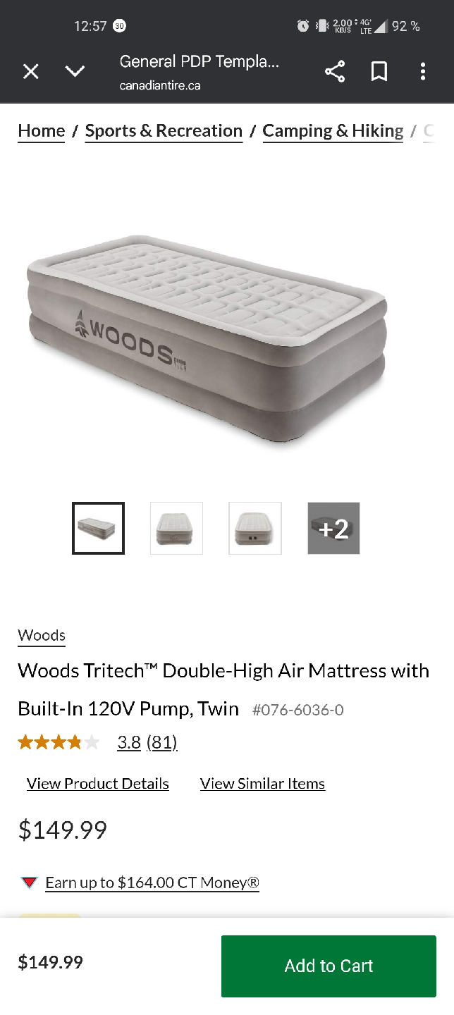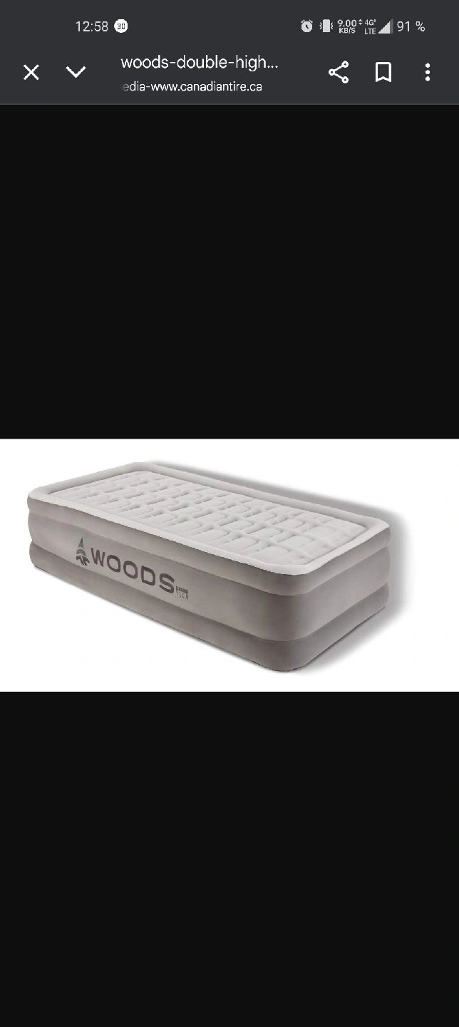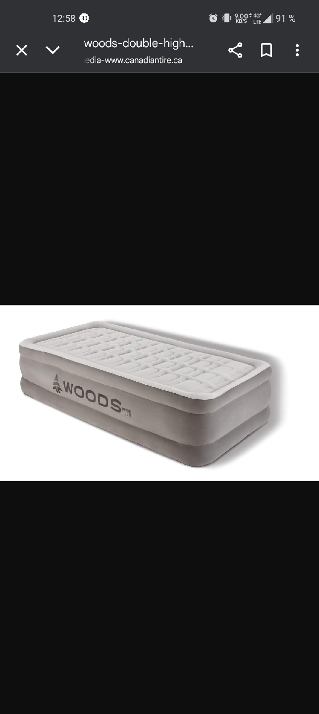 Selling a Woods Tritech Double-High Air Mattress with Built-In 120V Pump in single size. It's in great shape and ready for your next camping trip or guest!