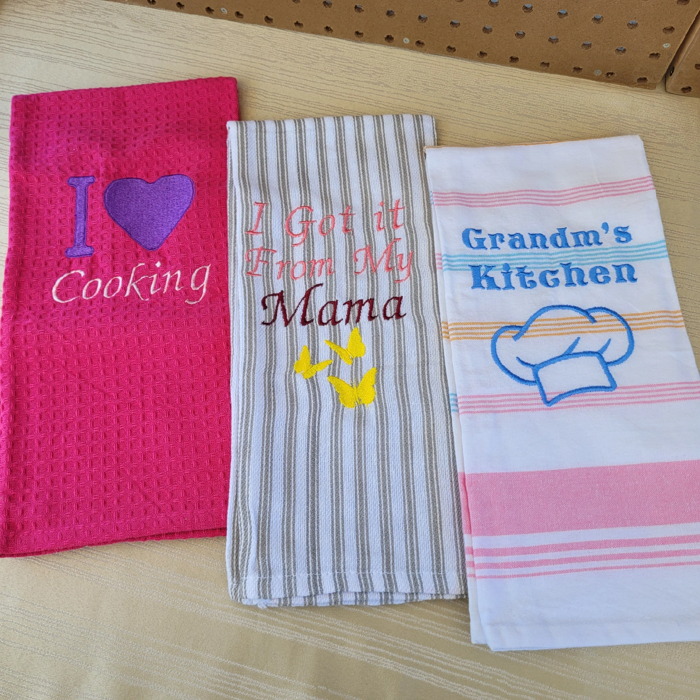 Perfect Gift Machine Embroidered by Me SilvaMarie 100% Cotton Tea Towels - Please See all pictures 8.00 or 2 for 15.00 May be able to Costomize for depending on what you would like! Please See all my Other Listings, Bundle & Save for a Better Deal! Located in Bradford, May be able to Meet, Shipping Offered at Buyers Expense, Please contact me for more Info & to make arrangements, sorry no holds without an ET, Thank you so much for Looking!