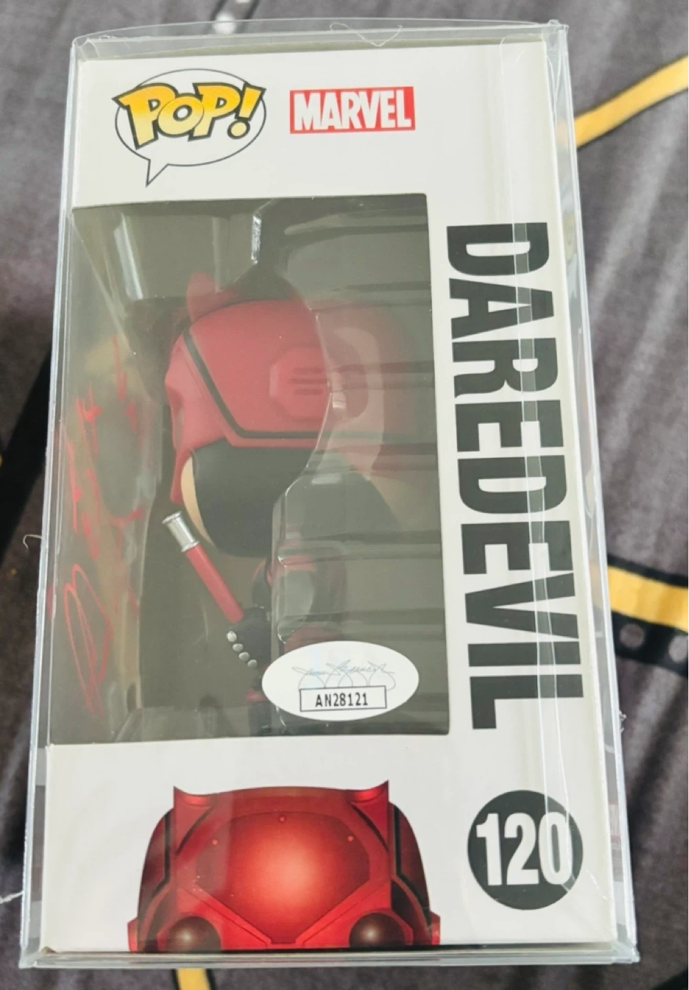 Selling a Marvel Pop! Daredevil #120 vinyl bobble-head figure. The figure is signed and comes with a JSA certification number AN28121. It's in great condition and ready for a new home! Price is negotiable.