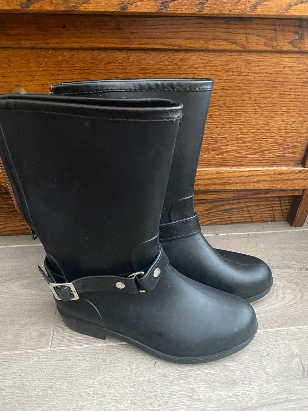 Cute black rain boots. Both are a size 6