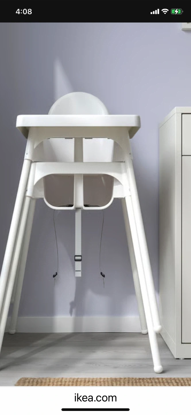 Selling an IKEA Antilop high chair in white! It's in excellent condition and ready for a new home. The dimensions are 42 cm (16 1/2") x 42 cm (16 1/2") x 25 cm (9 7/8"). It can hold up to 15 kg (33 lb).