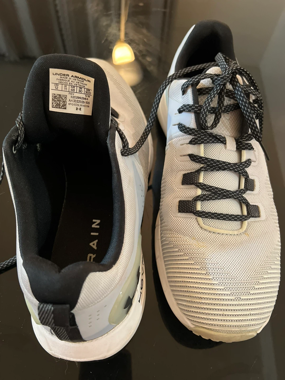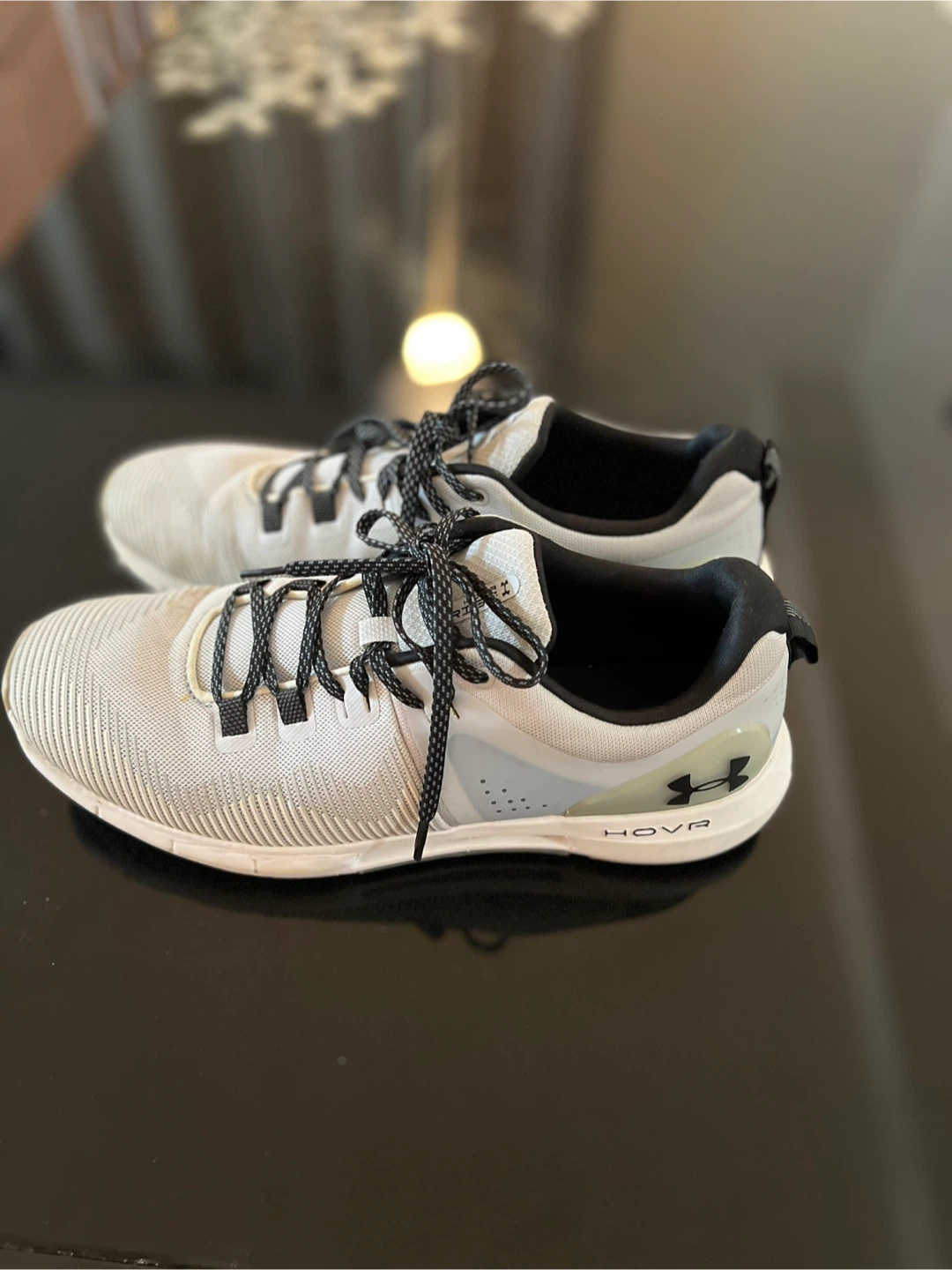Get ready to elevate your training with these Under Armour HOVR Train athletic shoes! Designed for optimal performance, these shoes feature HOVR technology, providing a zero-gravity feel to maintain energy return that helps eliminate impact, perfect for gym sessions or outdoor workouts. These are in used condition. Key Features: * Brand: Under Armour * Model: HOVR Train * Colour: White/Grey * Technology: HOVR for energy return * Ideal for: Training, Gym, Fitness Ready to step up your fitness game? These Under Armour HOVR Train shoes are waiting for you! Don't miss the chance to snag these fantastic shoes. Act fast—if the ad is up, they’re still available!