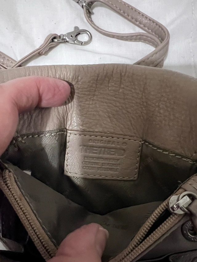 This is a used OriginaLO Metro handbag, perfect for carrying all your essentials! It has several zippered pockets and a magnetic closure. There are a few signs of wear, but overall it's in good condition and ready for a new owner. It's just the right size for carrying your phone, wallet, and keys without being too bulky. Here are some additional details: * Brand: OriginaLO Metro * Material: Genuine Leather * Colour: Taupe * Multiple zippered compartments * Adjustable shoulder strap I'm pricing this at $35, which is fair for a used leather bag of this quality. If you're reading this, it's still available!
