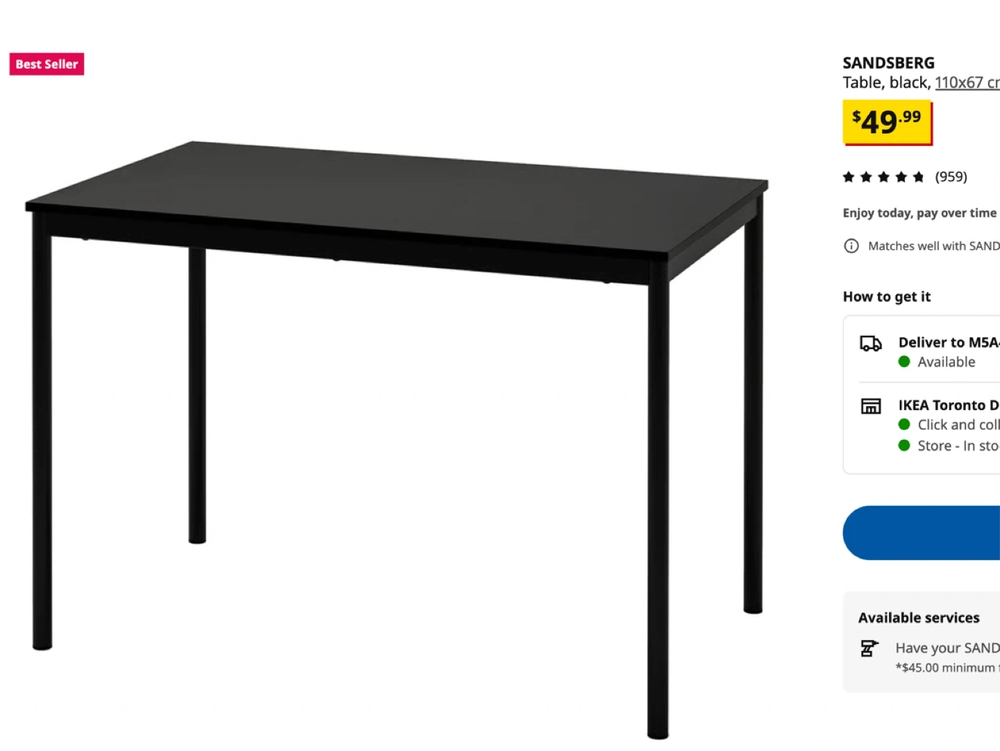 Selling a black IKEA Sandsberg table. It's in great shape and measures 110x67 cm. Originally bought for $49.99!