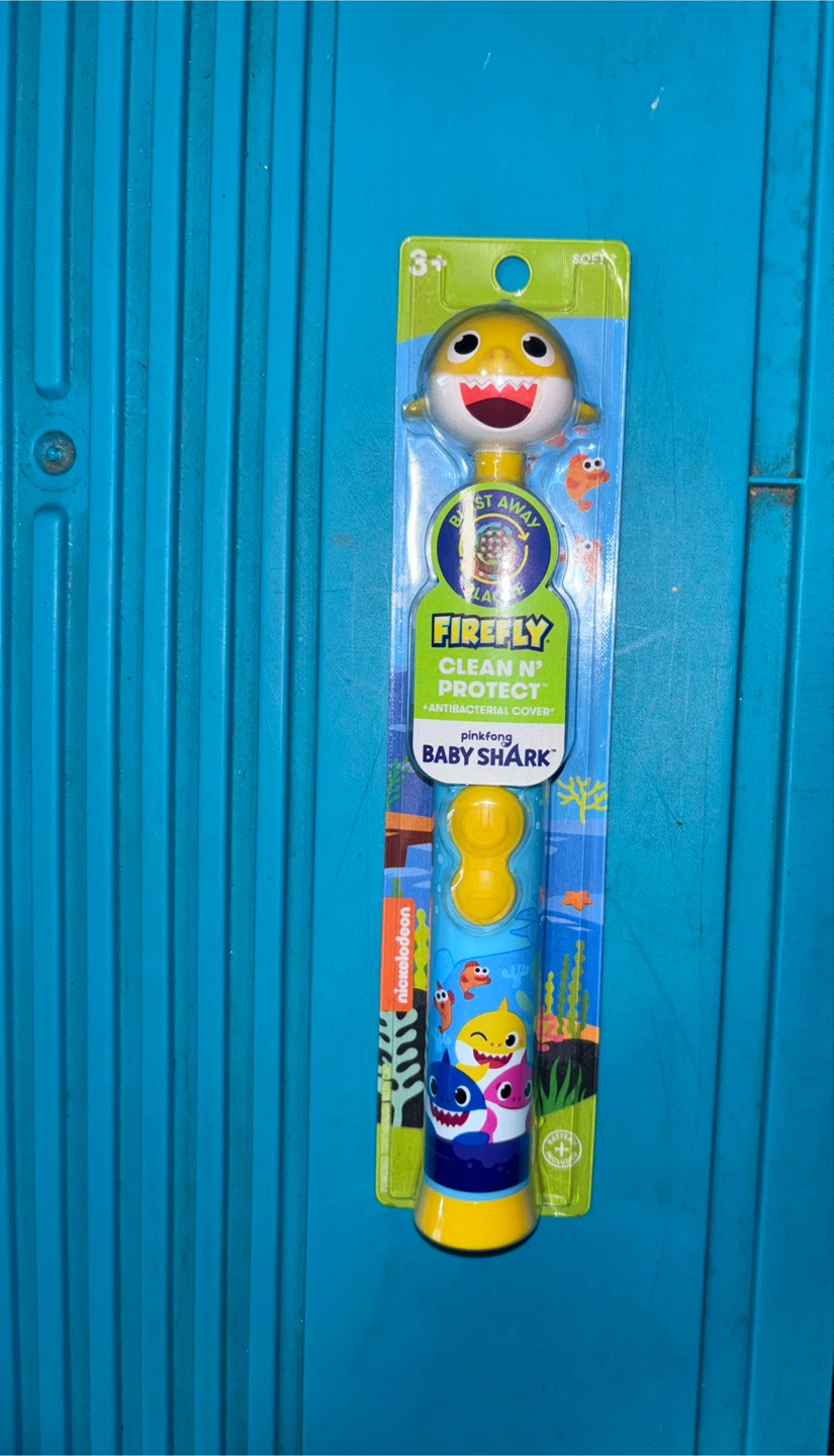 I'm selling a brand new Firefly Clean N' Protect Baby Shark toothbrush with an antibacterial cover! It's a soft toothbrush designed for ages 3+ and features a fun Baby Shark design. Perfect for encouraging good oral hygiene habits! Its an electric toothbrush , battery included.