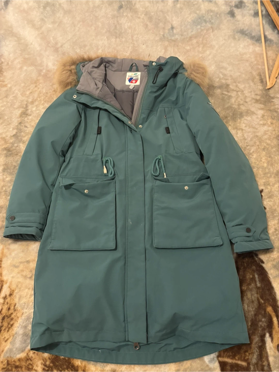 Cozy teal winter parka from Tailang 1988! It's in great condition and ready to keep you warm this winter. Features a fur-trimmed hood and plenty of pockets for your essentials. Size 13/158cm