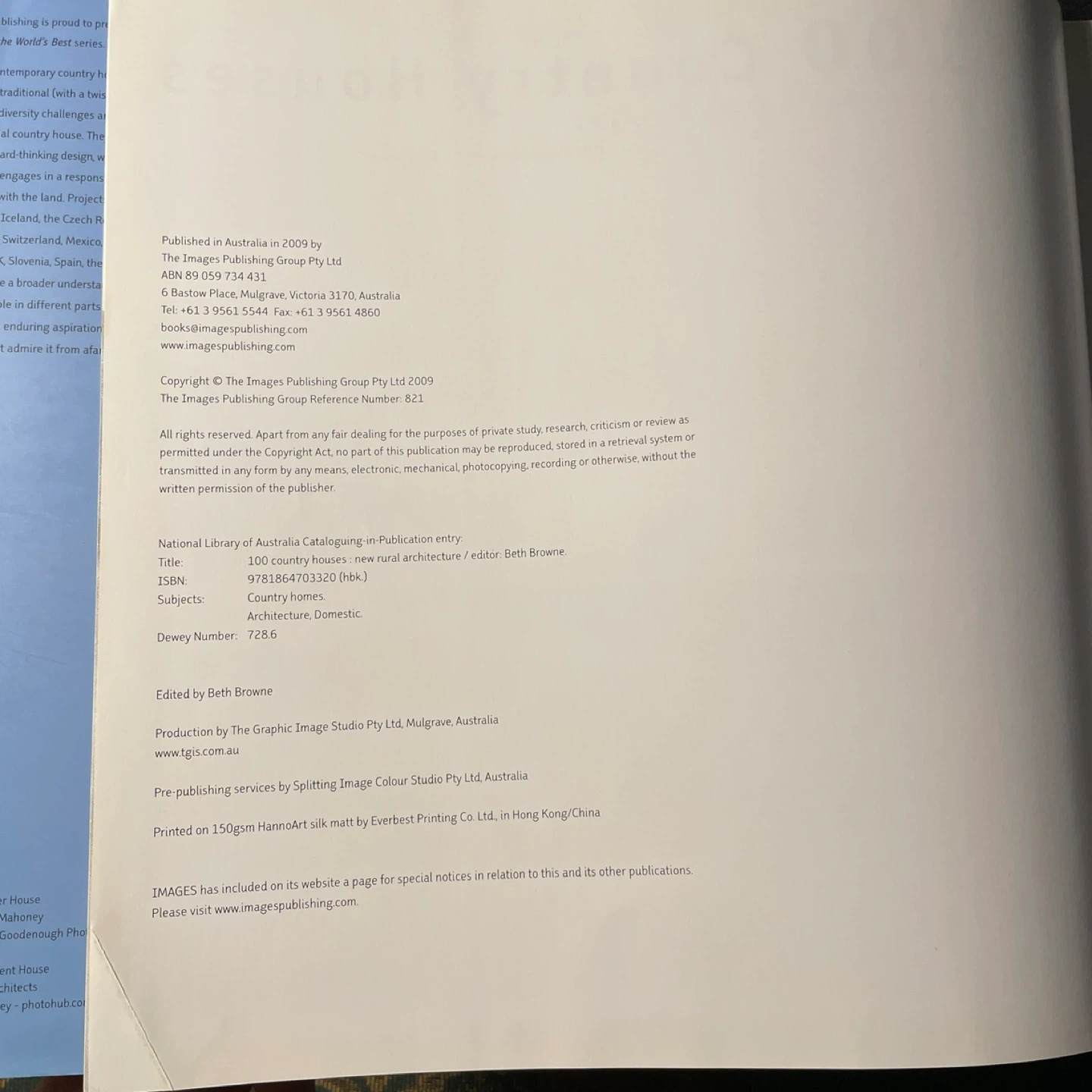 100 COUNTRY HOUSES: NEW RURAL ARCHITECTURE Hardcover