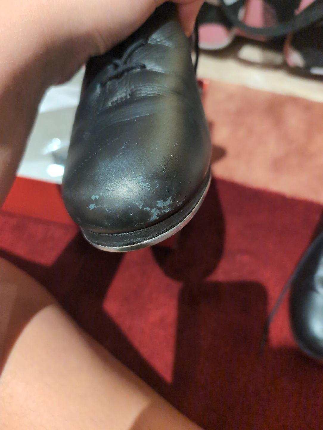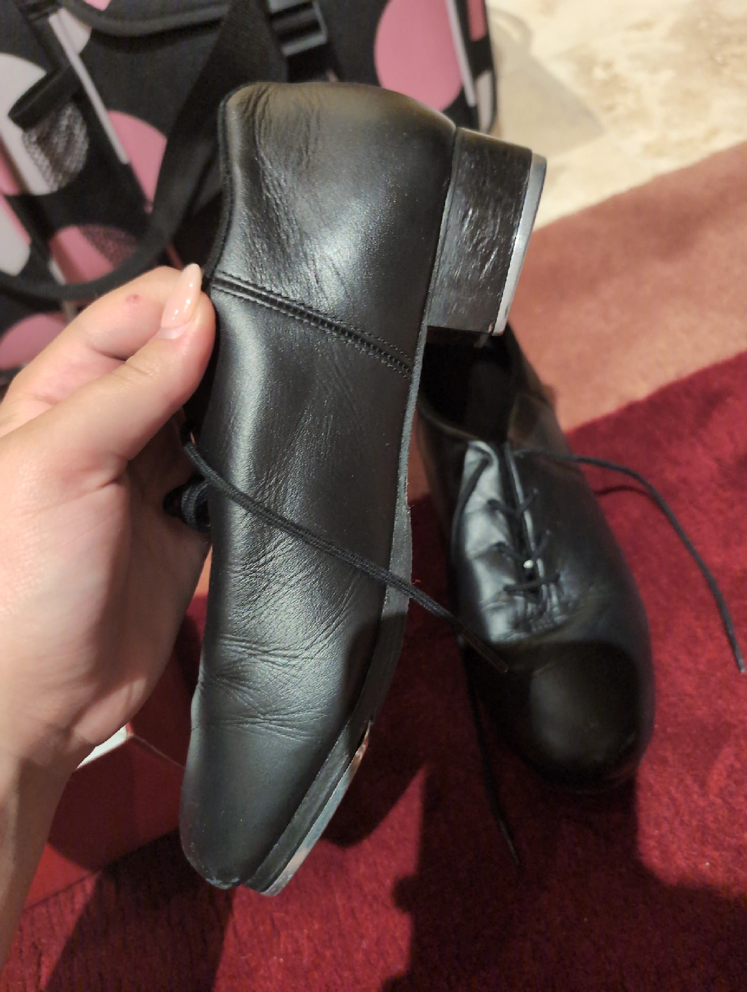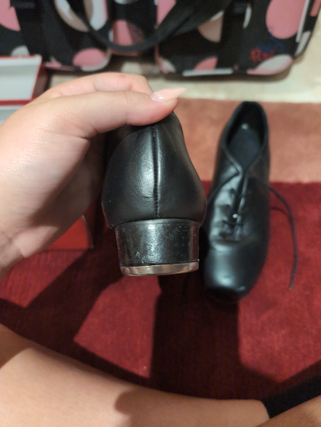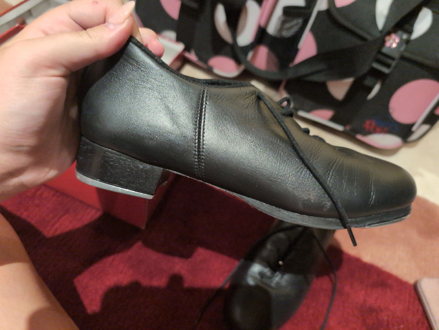 Selling a pair of Capezio Cadence tap shoes in black. They are size 9.5M. These shoes have some wear but are still in good condition for practice or performance. The original box is included!
